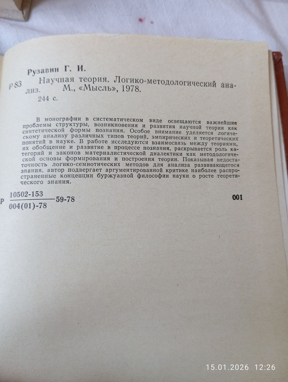 Рузавин Г. Научная теория. Логико - математический анализ. Редкая. В хорошем состоянии, тв переплет. 244 с, тираж 8000. Возможность отправки Белпочтой, полная предоплата