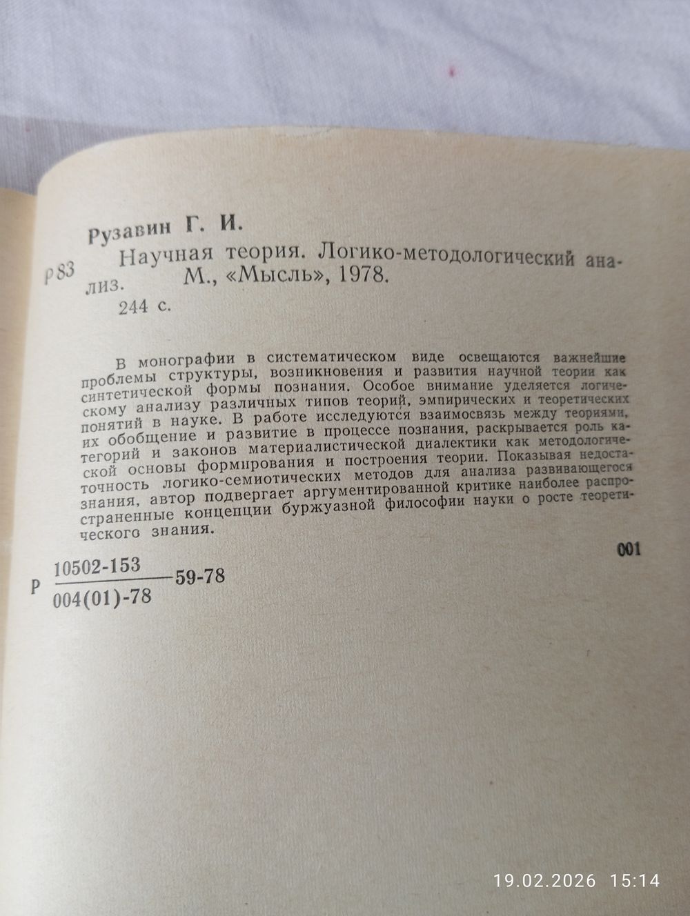 Научная теория. Логико методологический анализ. Рузавин Г. М. Мысль 1978. В хорошем состоянии, тв переплет. 244 с. Тираж 8000. Возможность отправки Белпочтой, полная предоплата