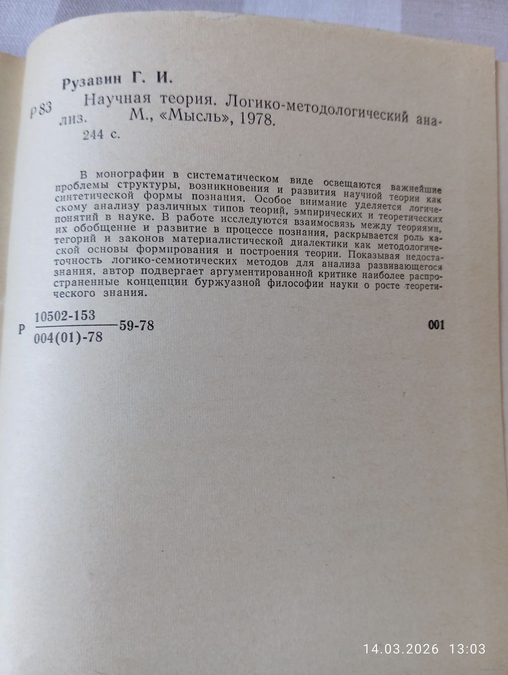 Научная теория. Логико методологический анализ. Рузавин Г. Мысль 1978. В хорошем состоянии, тв переплет. 244 с. Тираж 8000. Возможность отправки Белпочтой, полная предоплата