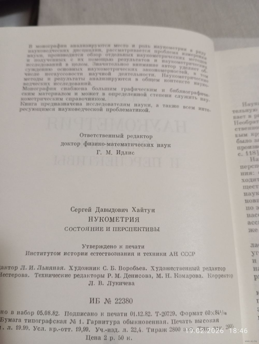 Наукометрия. Состояние и перспективы. Хайтун С. М. Наука 1983. В хорошем состоянии, тв переплет. 344 с. Тираж 2800. Возможность отправки Белпочтой, исключительно. Полная предоплата на карту Беларусбанк. Без наложенного платежа!
