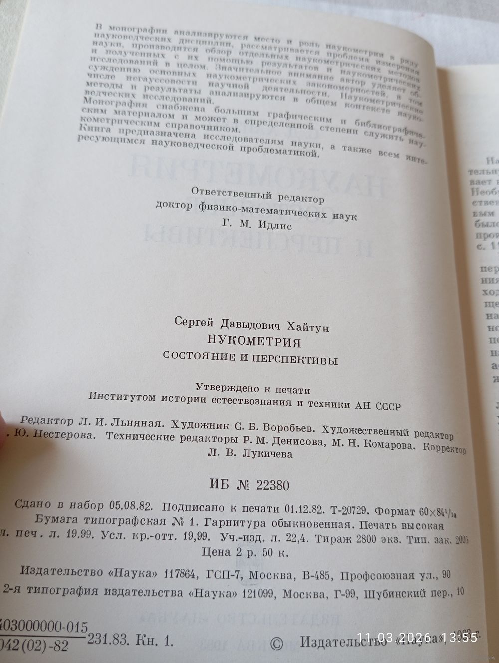 Наукометрия. Состояние и перспективы. Хайтун С. Редкая. М. Наука 1983. В хорошем состоянии, тв переплет. 344 с. Тираж 2800. Возможность отправки Белпочтой, исключительно. Полная предоплата на карту Беларусбанк