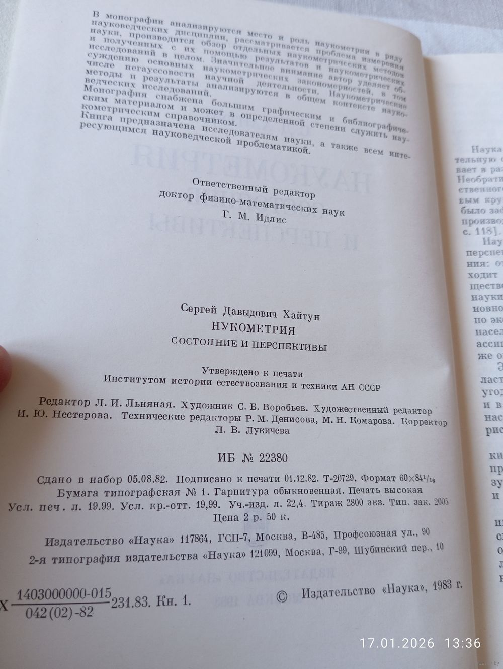 Наукометрия. Состояние и перспективы. Хайтун С. Редкая! М. Наука 1983. В хорошем состоянии, тв переплет. 344 с. Тираж 2800. Возможность отправки Белпочтой, полная предоплата на карту Беларусбанк!