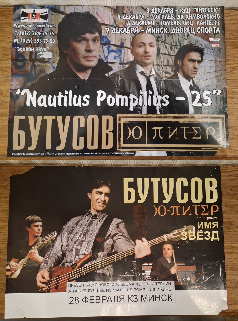 афиши с концертов Вячеслава Бутусова и группы Ю-Питер в Минске 07.12.2008 Дворец Спорта и 28.02.2011 к\з Минск. Состояние на фото