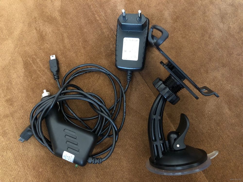 Зарядка через сетевой адаптер, зарядка и работа через автомобильный адаптер. Надежный и удобный держатель на лобовое стекло. Карта памяти 16 Гб, класс 10. Удобный чехол для переноски. Имеется в наличии CD диск с руководством пользователя на русском языке.. В конце 2023 года был установлен новый аккумулятор, навигатор в отличном состоянии, в нем всё работает.