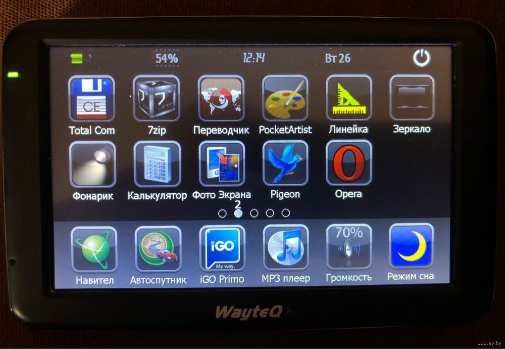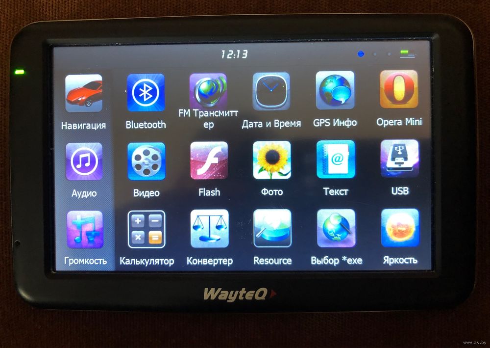 Навигатор WayteQ GPS X960BT, профессиональная модель, которую можно использовать как для навигации, так и для развлекательных целей: воспроизведение аудио, видео, просмотр фотографий, блютуз, подключение к сети и вызов абонента через сотовый телефон посредством системы hands free, (громкая связь), история звонков, повторный набор, GPRS Dial-Up Networking интерфейс, встроенный FM-трансмиттер, (подключение навигатора к автомобильному радиоприемнику для прослушивания на нем песен с самого навигатора), чтение электронных книг, калькулятор, конвертер валют, игры, и многое другое. Двухядерный процессор SIRF Atlas V AT551 с высокой производительностью и низким энергопотреблением, с тактовой частотой 500 МГц. 128 Мб оперативной памяти и 4Гб встроенной. Тип экрана – цветной , размер экрана по диагонали 5 дюймов, разрешение экрана 800х480 (TFT, 65 тыс. цветов, сенсорный – резистивный). Загрузка пробок посредством GPRS связи с интернетом через Bluetooth. Получение информации о трафике (ТМС). Мощный Li-Ion аккумулятор, обмен данных с компьютером через миниUSB порт. Audio выход 3,5 мм. Стилус, датчик освещенности. Качественный прием для точного позиционирования и устойчивой навигации. Версия Навител 9.13.66, карты Россия, Беларусь.