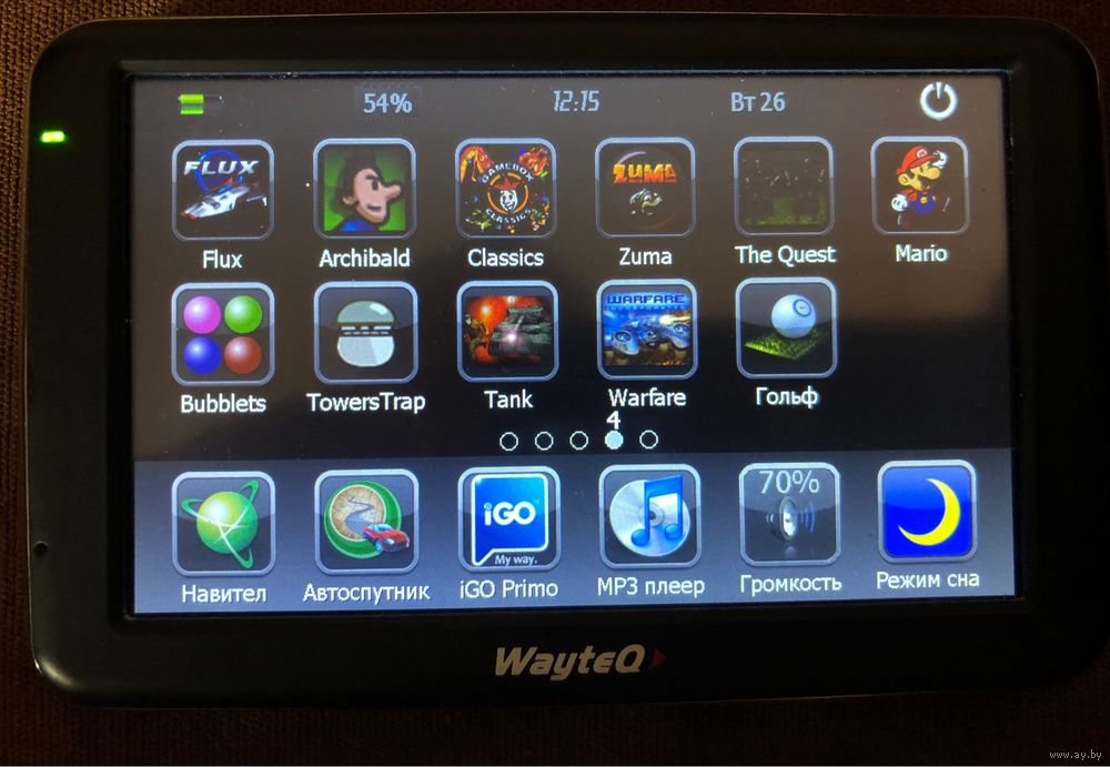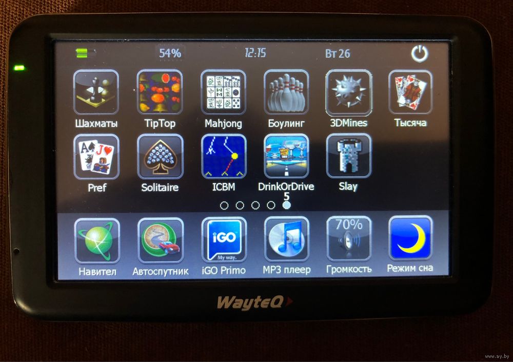 Навигатор WayteQ GPS X960BT, профессиональная модель, которую можно использовать как для навигации, так и для развлекательных целей: воспроизведение аудио, видео, просмотр фотографий, блютуз, подключение к сети и вызов абонента через сотовый телефон посредством системы hands free, (громкая связь), история звонков, повторный набор, GPRS Dial-Up Networking интерфейс, встроенный FM-трансмиттер, (подключение навигатора к автомобильному радиоприемнику для прослушивания на нем песен с самого навигатора), чтение электронных книг, калькулятор, конвертер валют, игры, и многое другое. Двухядерный процессор SIRF Atlas V AT551 с высокой производительностью и низким энергопотреблением, с тактовой частотой 500 МГц. 128 Мб оперативной памяти и 4Гб встроенной. Тип экрана – цветной , размер экрана по диагонали 5 дюймов, разрешение экрана 800х480 (TFT, 65 тыс. цветов, сенсорный – резистивный). Загрузка пробок посредством GPRS связи с интернетом через Bluetooth. Получение информации о трафике (ТМС). Мощный Li-Ion аккумулятор, обмен данных с компьютером через миниUSB порт. Audio выход 3,5 мм. Стилус, датчик освещенности. Качественный прием для точного позиционирования и устойчивой навигации. Версия Навител 9.13.66, карты Россия, Беларусь.
