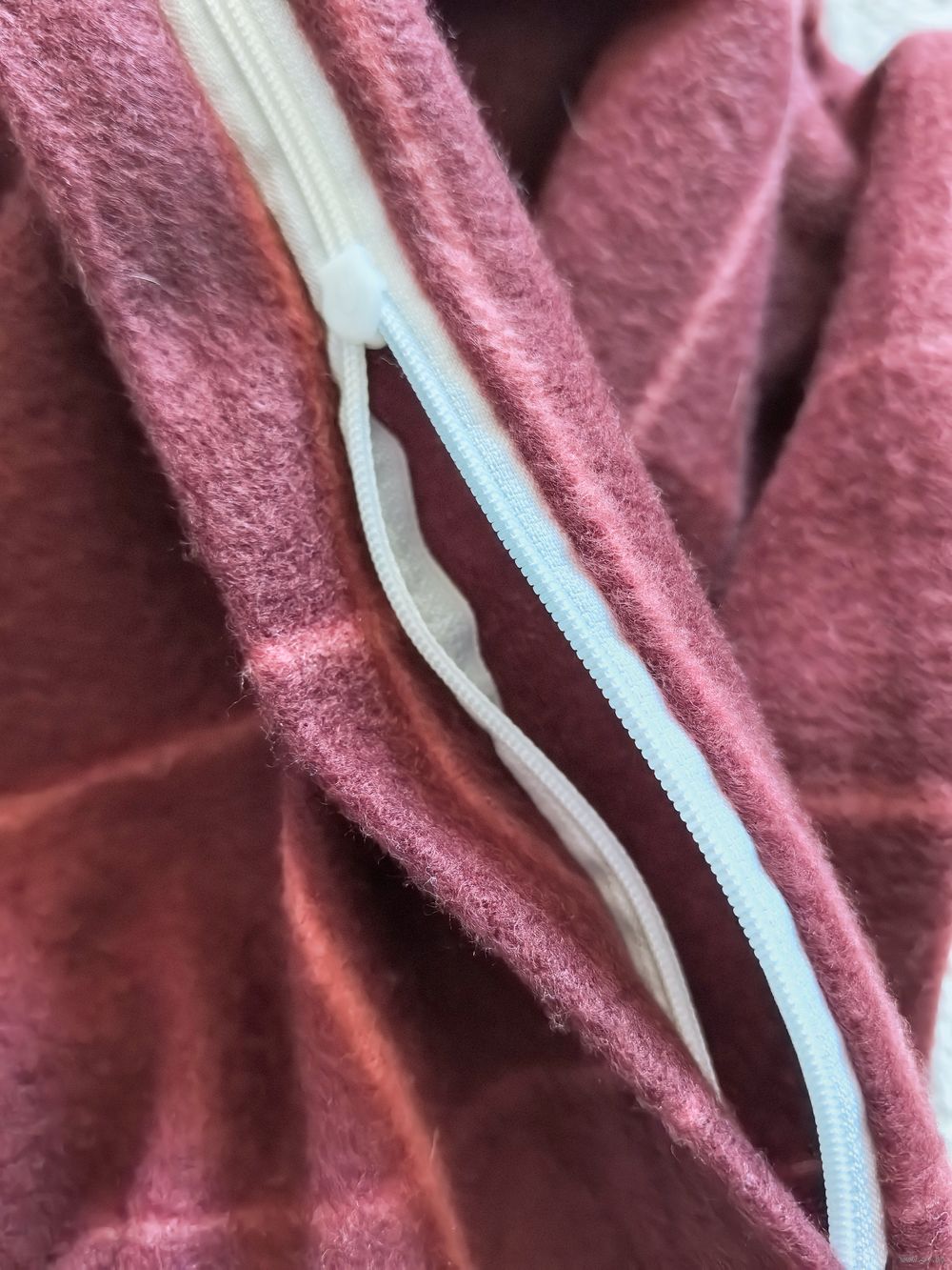 Мягкая акриловая наволочка, ткань невесомая, внешне похожа на войлок, но не грубая, а очень-очень мягкая... не знаю, как она правильно называется, смотрите все фото - там хорошо видно.Такого качества бывают иногда пледы.