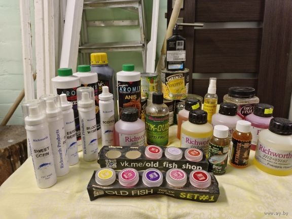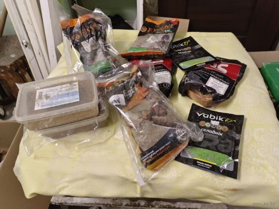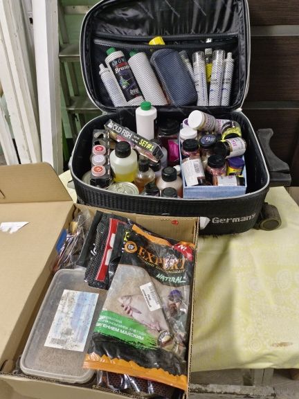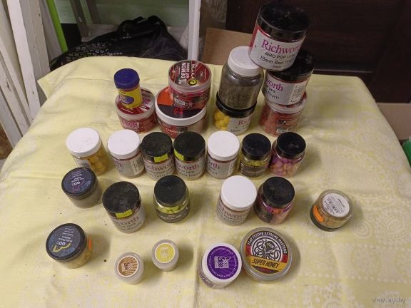 Наживка для рыбалки. Большинство емкостей заполнено на 100%.
