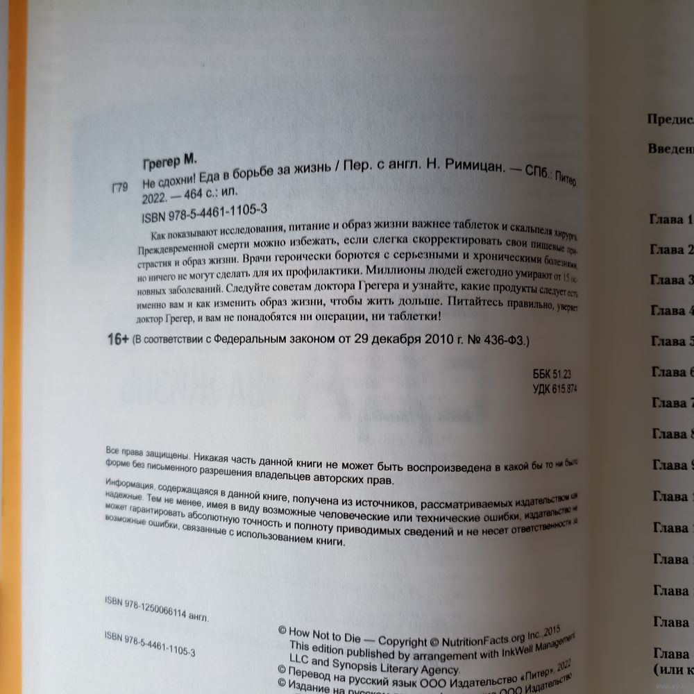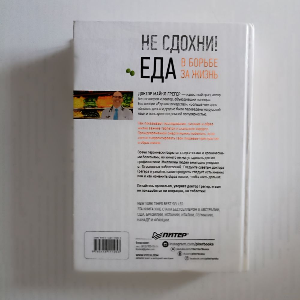 Как показывают исследования, питание и образ жизни важнее таблеток и скальпеля хирурга. Преждевременной смерти можно избежать, если слегка скорректировать свои пищевые пристрастия и образ жизни. Врачи героически борются с серьезными и хроническими болезнями, но ничего не могут сделать для их профилактики. Миллионы людей ежегодно умирают от 15 основных заболеваний. Следуйте советам доктора Грегера и узнайте, какие продукты следует есть именно вам и как изменить образ жизни, чтобы жить дольше. Питайтесь правильно, уверяет доктор Грегер, и вам не понадобятся ни операции, ни таблетки!