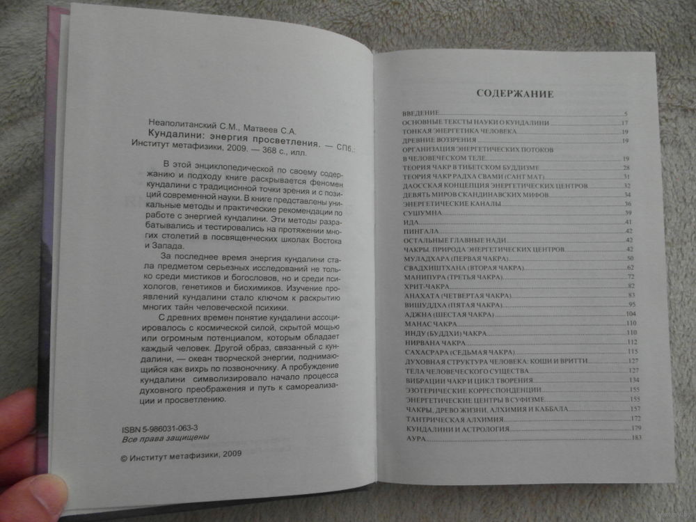 В этой энциклопедической по своему содержанию и подходу книге раскрывается феномен кундалини с традиционной точки зрения и с позиций современной науки. В книге представлены уникальные методы и практические рекомендации по работе с энергией кундалини. Эти методы разрабатывались и тестировались на протяжении многих столетий в посвященческих школах Востока и Запада. За последнее время энергия кундалини стала предметом серьезных исследований не только среди мистиков и богословов, но и среди психологов, генетиков и биохимиков. Изучение проявлений кундалини стало ключом к раскрытию многих тайн человеческой психики. С древних времен понятие кундалини ассоциировалось с космической силой, скрытой мощью или огромным потенциалом, которым обладает каждый человек. Другой образ, связанный с кундалини, - океан творческой энергии, поднимающийся как вихрь по позвоночнику. А пробуждение кундалини символизировало начало процесса духовного преображения и путь к самореализации и просветлению. Фото по запросу, адрес в описании продавца.