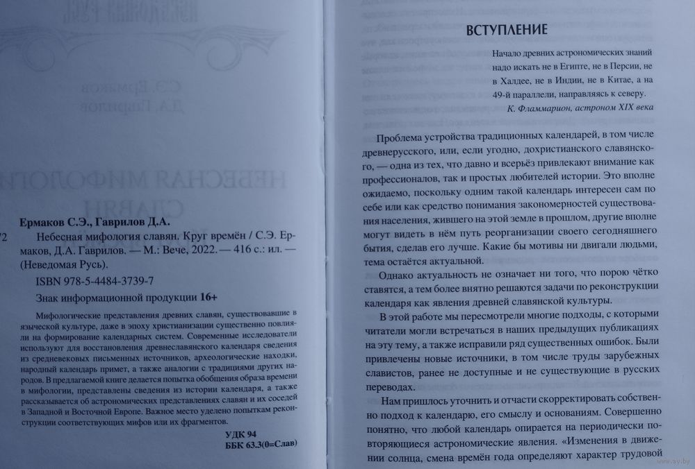 Тираж 1000 экз. 418 стр. Календарные представления древних славян, существовавшие в языческой культуре, даже в эпоху христианизации существенно повлияли на формирование календарных систем славянских народов. Современные исследователи используют для восстановления древнеславянского календаря сведения из средневековых письменных источников, археологические находки, народный календарь примет, а также аналогии с календарными системами других народов. В предлагаемой книге делается попытка обобщения образа времени в мифологии, представлены сведения из истории календаря, а также рассказывается об астрономических представлениях славян и их соседей в Западной и Восточной Европы. Важное место уделено реконструкции фрагментов астрономических и календарных мифов
