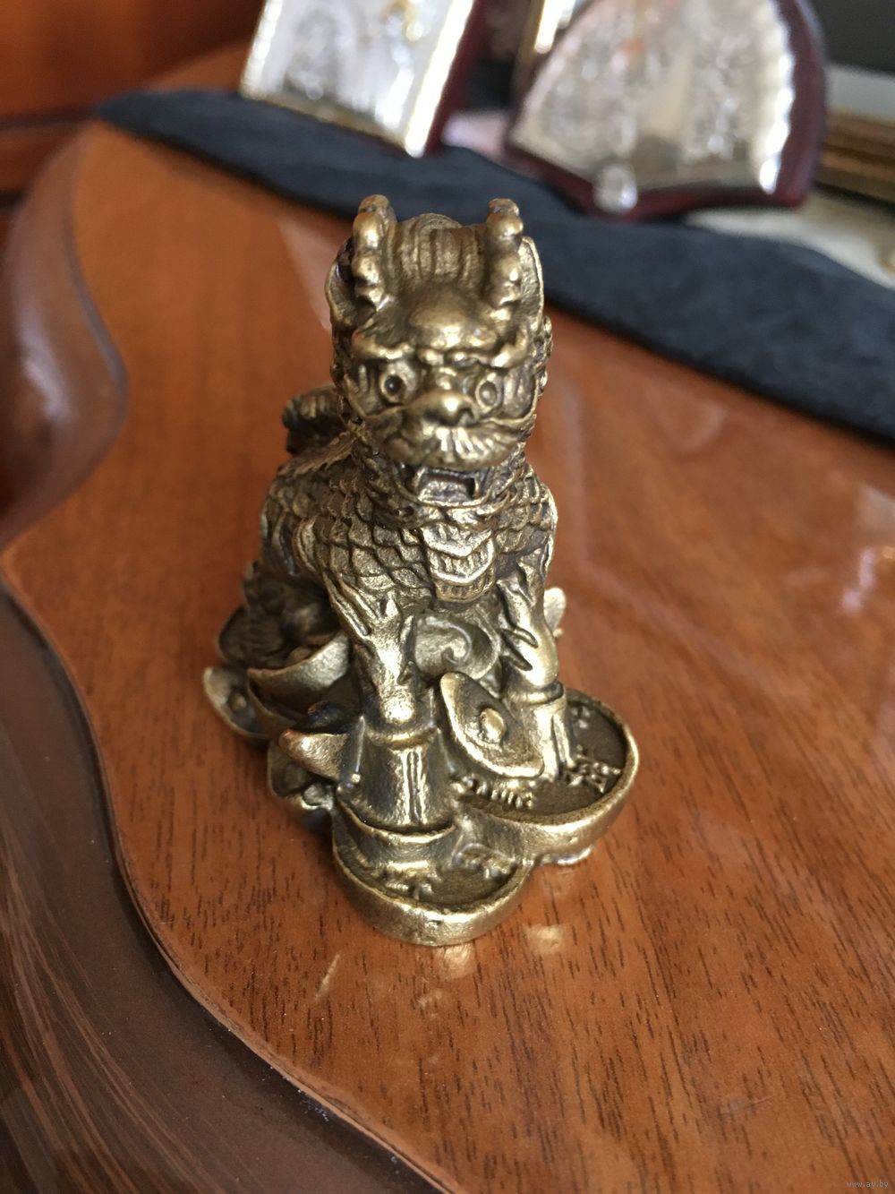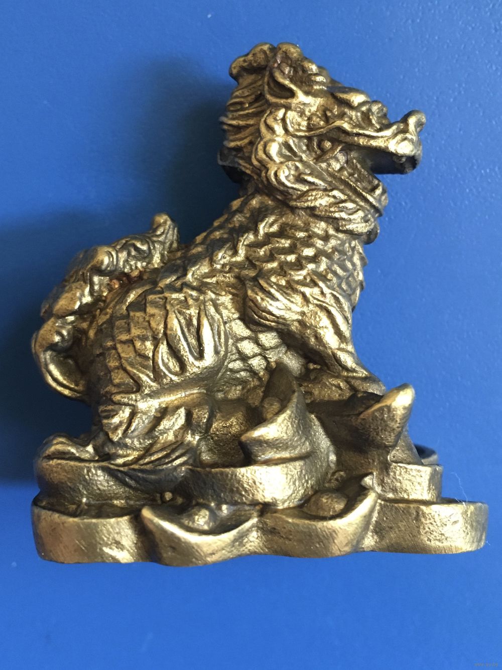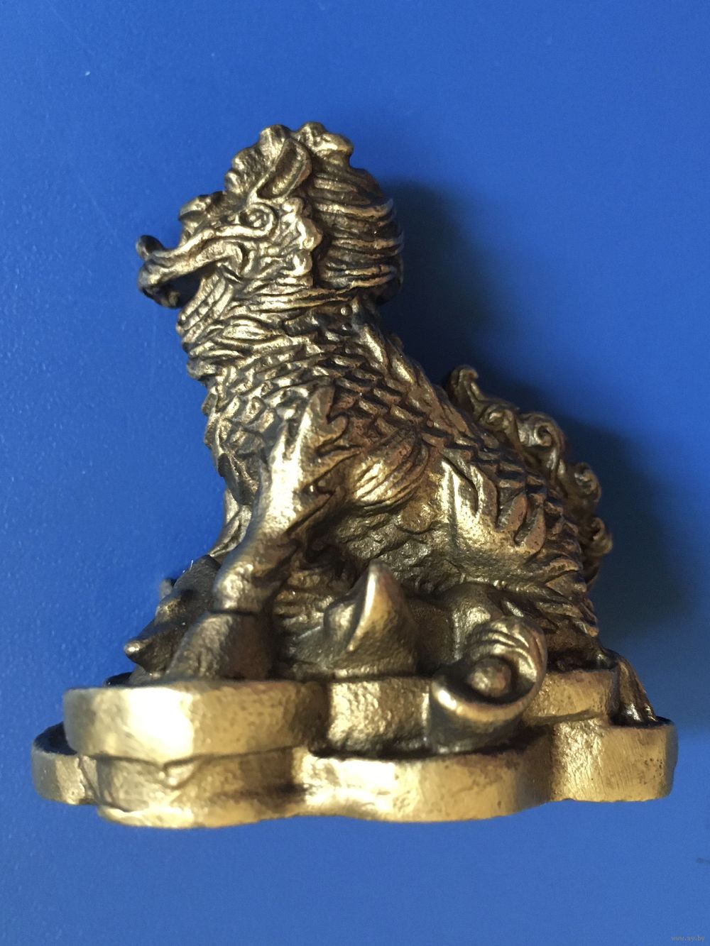 Небесный лев защитник Будды (собака Фо). Цельная тяжелая статуэтка с отличной детализацией, 5,5 см Х 4,5 см