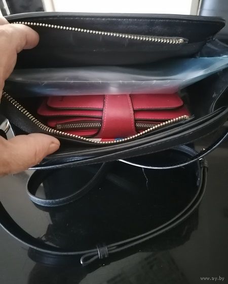 Небольшая, но вместительная сумочка, б/у немного, есть короткая и длинная ручки. Ширина снизу 25см, вверху 22см, высота 22см, дно размером 25х9см. Из дефектов только чуть надорвано возле крепления колец для длинной ручки (фото 6, 7), больше никаких дефектов и потертостей нет. Пересылка любой почтой по предоплате на телефон.