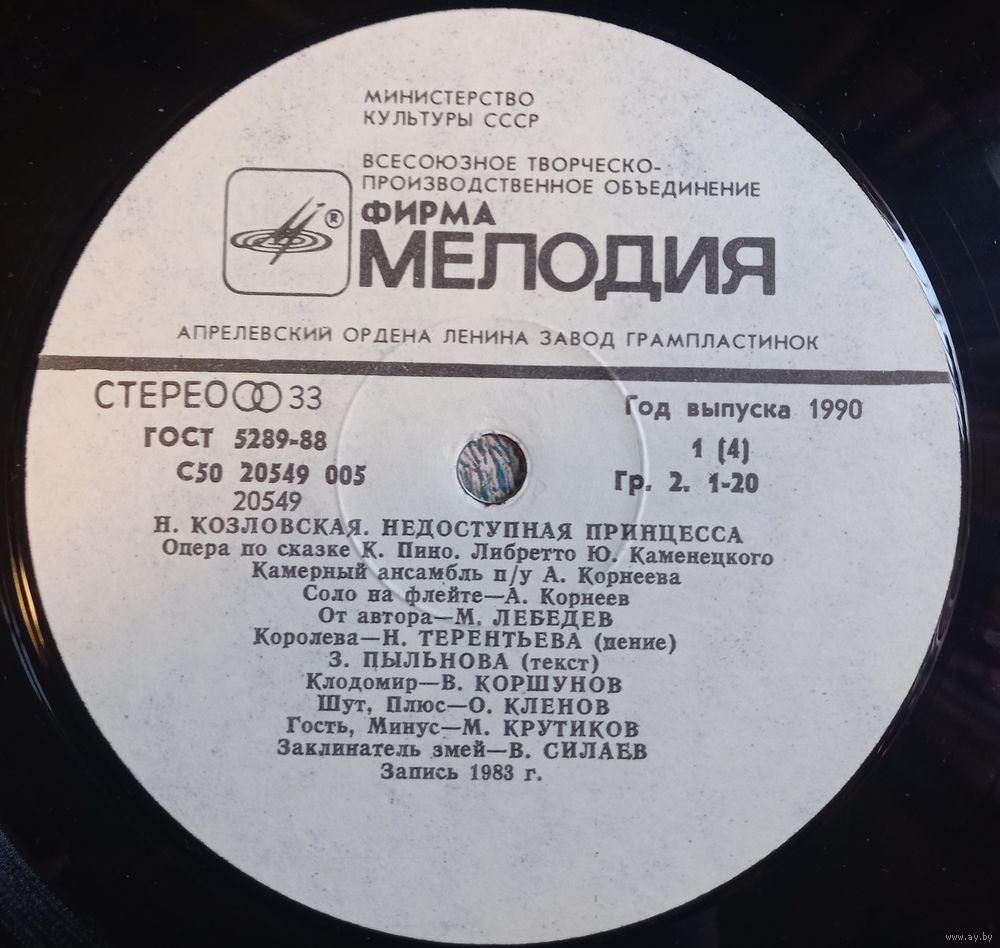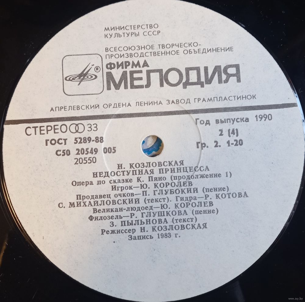 | Исполнитель | Недоступная Принцесса. Опера Н. Козловской по сказке К. Пино 2LP |