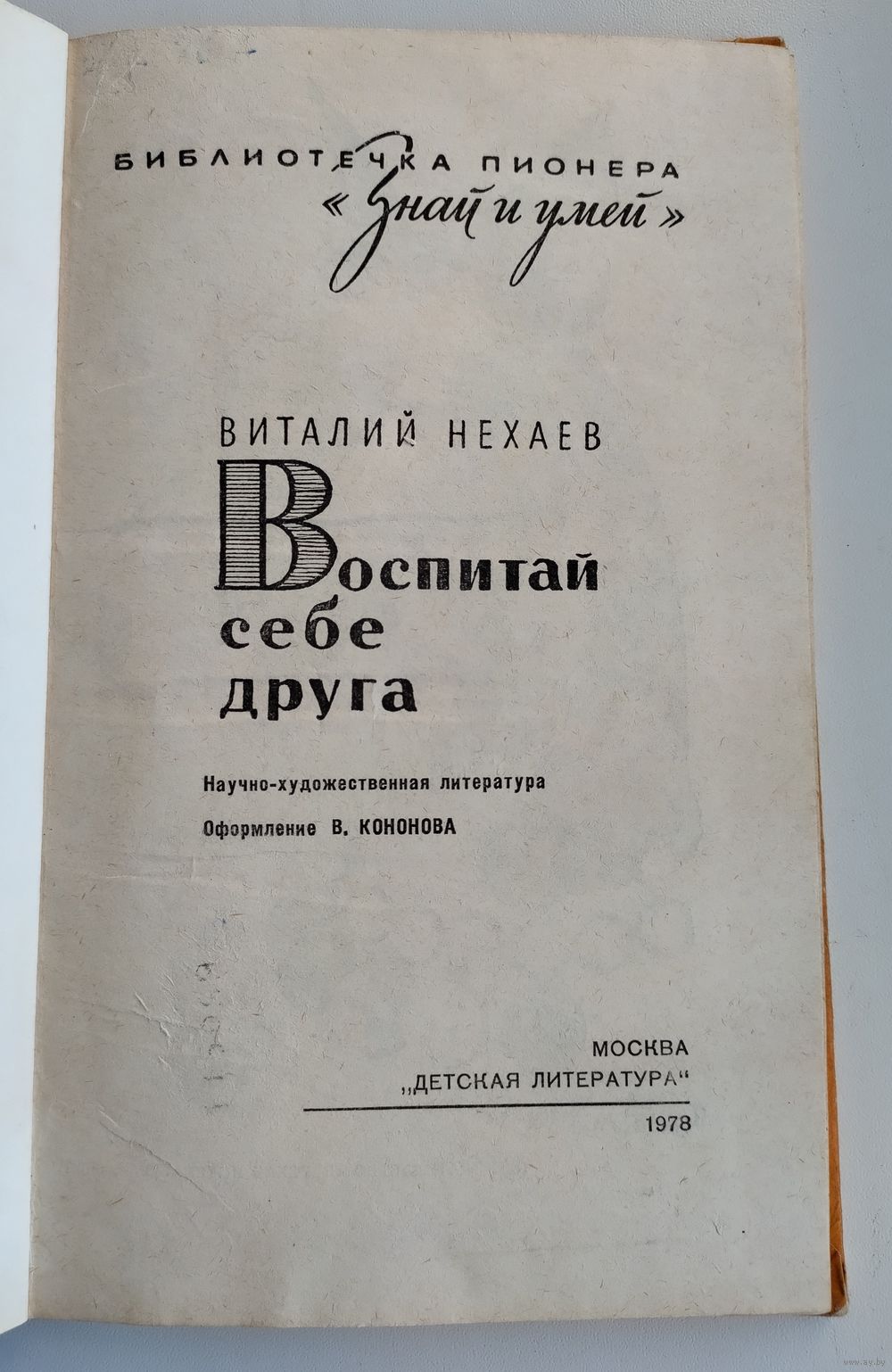 Нехаев В. Воспитай себе друга. Библиотечка пионера "Знай и умей". Оформление В. Кононова. Рисунки Ф.Васильевой. М.: Детская литература, 1978г., 94с. Твёрдый переплёт. Обычный формат.