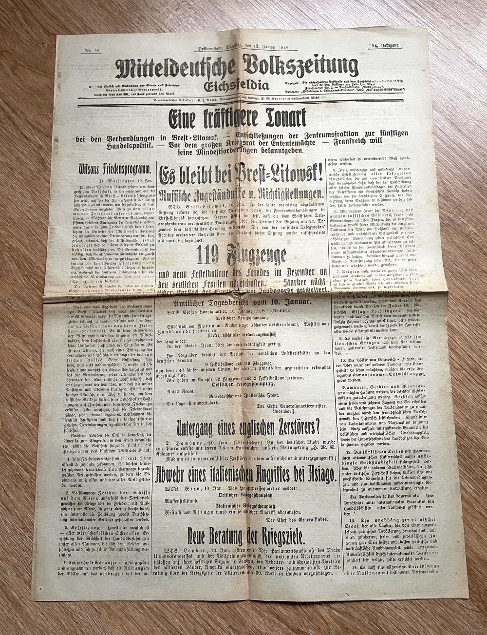 "Es bleibt bei Brest-Litowsk!" (Застаецца ў Брэст-Літоўску!) - Галоўны загаловак, які паказвае на працяг мірных перамоваў паміж Савецкай Расіяй і Цэнтральнымі дзяржавамі.