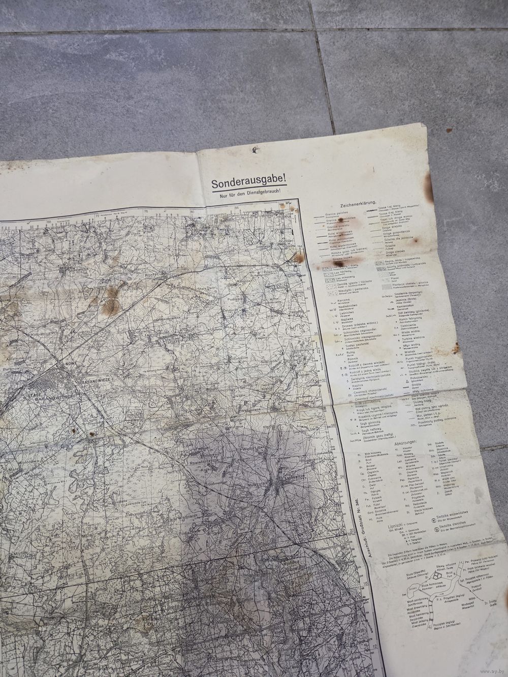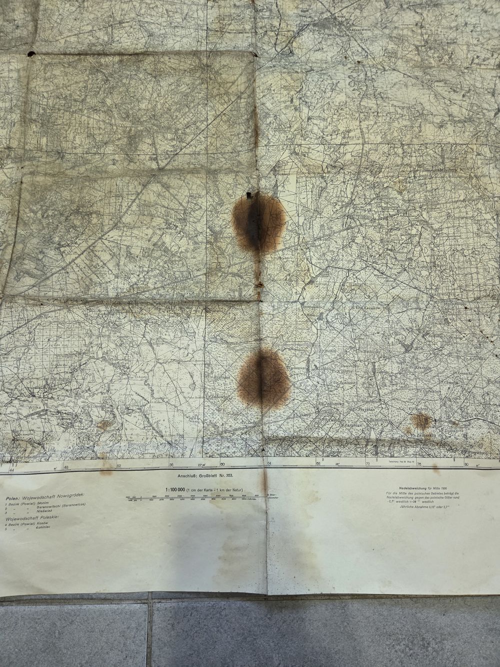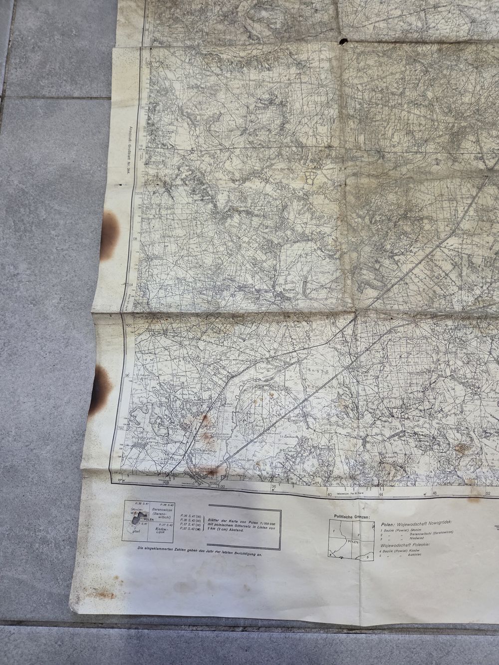 Старая немецкая карта 1936 года с Барановичами, Слонимом и другими местами. Внешний вид на фото.