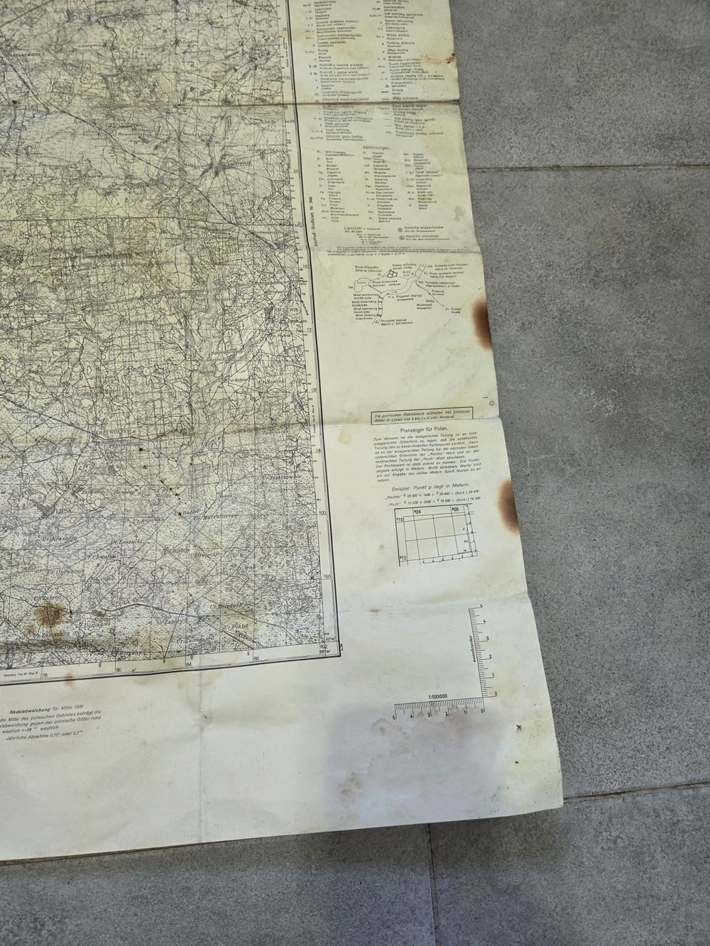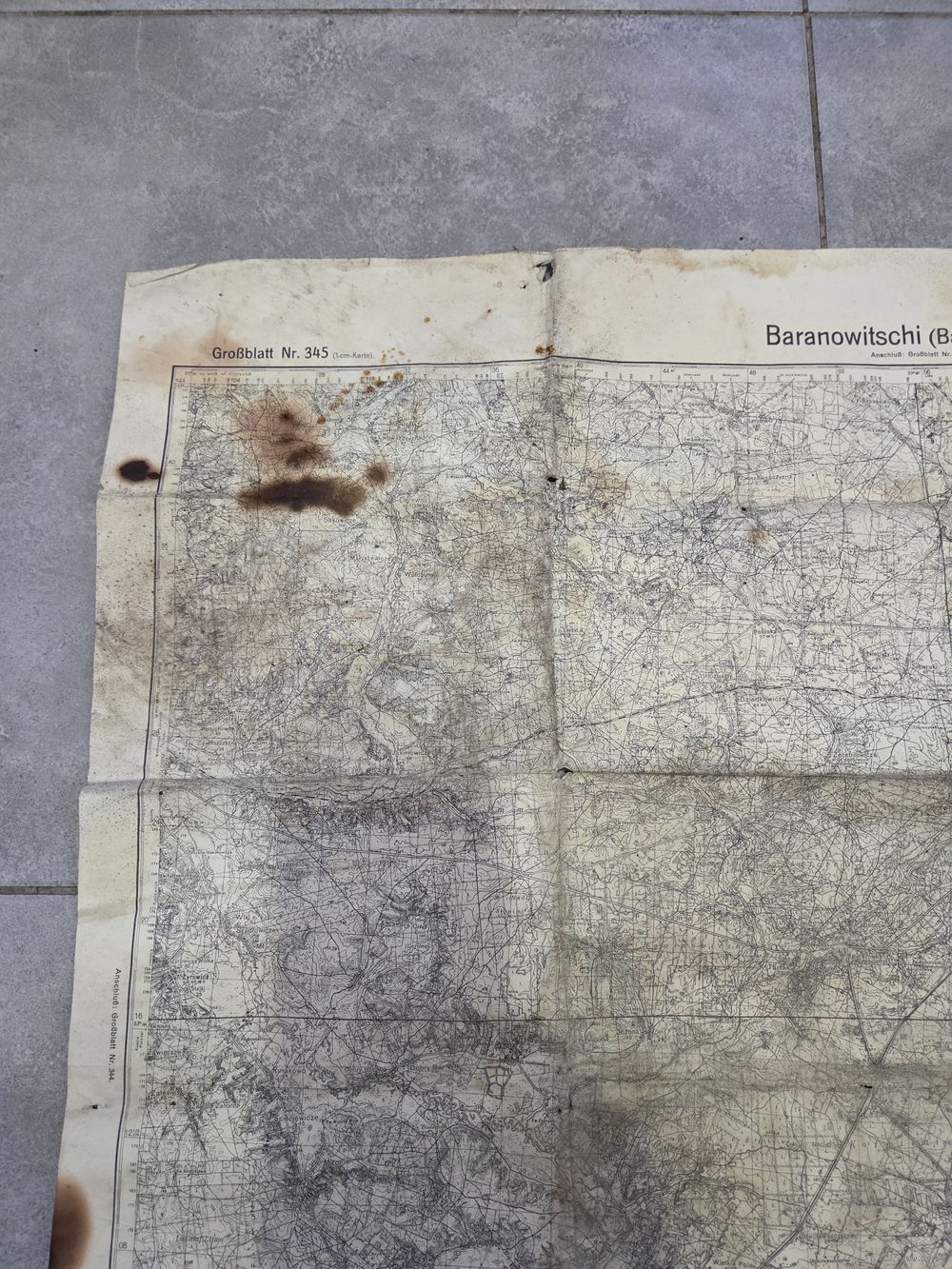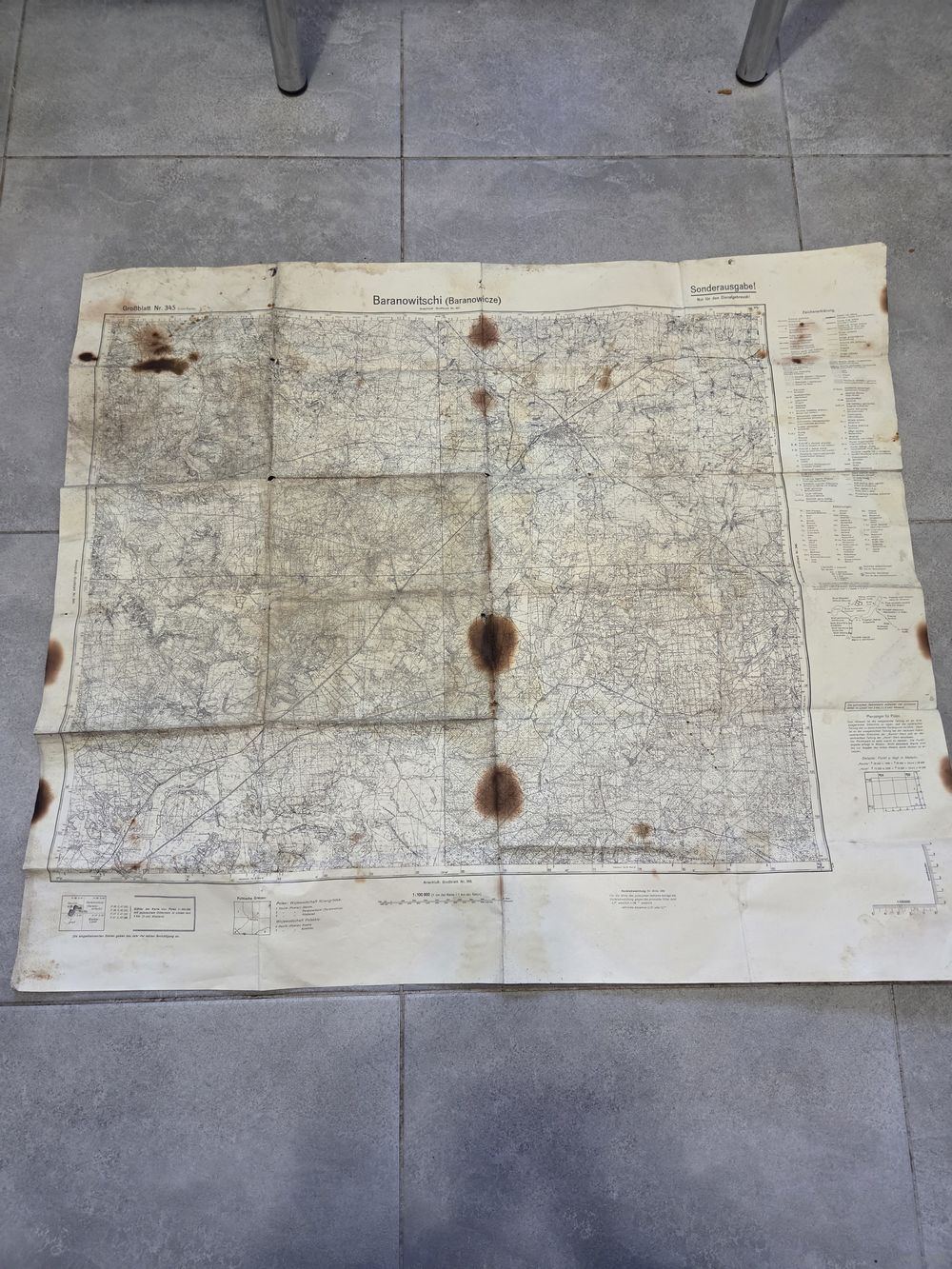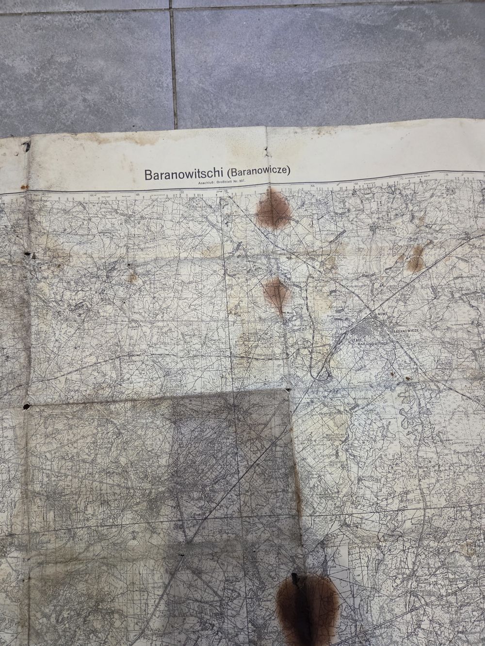 Старая немецкая карта 1936 года с Барановичами, Слонимом и другими местами. Внешний вид на фото.