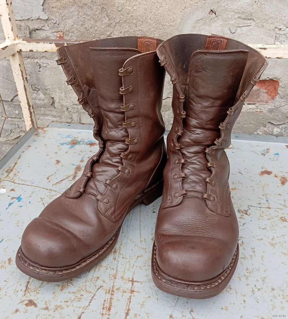 Ну и нужно понимать, что при использовании берц в реальных боевых условиях, подошва из нескольких слоев толстой натуральной кожи, усиленной неубиваемым полиуретаном снизу, даёт гораздо больше шансов сохранить ступню при подрыве противопехотной мины, чем резиновые подошвы современных берцев. Коричневые берцы были введены в 1971 году. До 1975 года полиуретановая подошва не только проклеивалась, но ещё и прошивалась по краю подошвы, для этих целей протектор был немного сдвинут от края подошвы ближе к центру. Сейчас являются редкостью и найти их большая удача. Фото являются описанием лота. Вы гарантированно получаете предмет представленный на фото. Оплата пересыла при получении. Оплата купленного лота - в течение 3 дней.