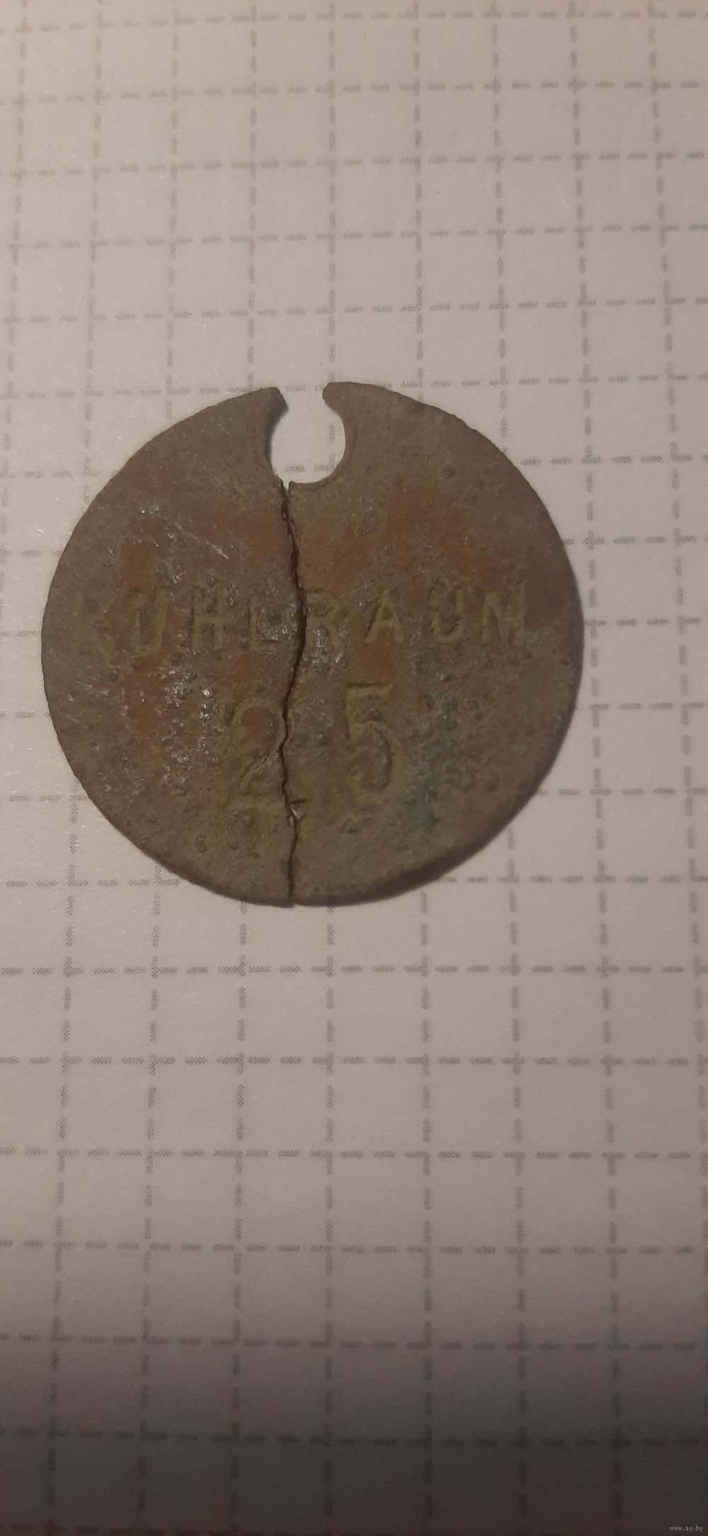 Немецкий жетон.(бирка) холодильная камера. расколот.