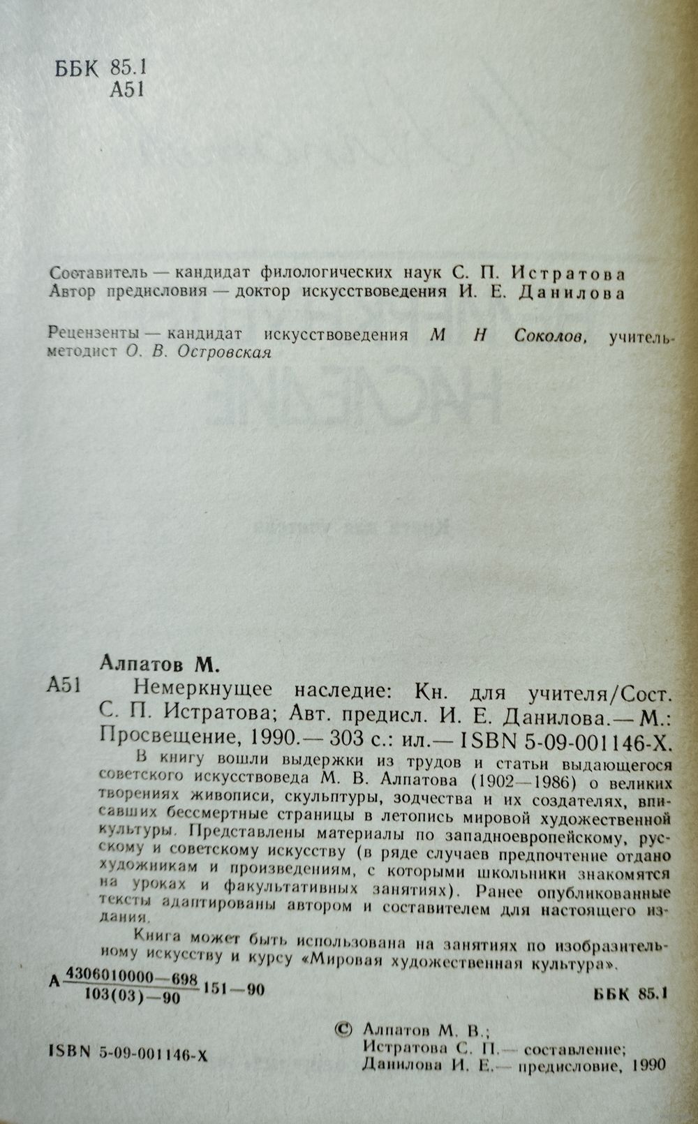 НЕМЕРНУЩЕЕ НАСЛЕДИЕ. Прекрасная книга известного искусствоведа о великих творениях живописи, скульптуры, зодчества