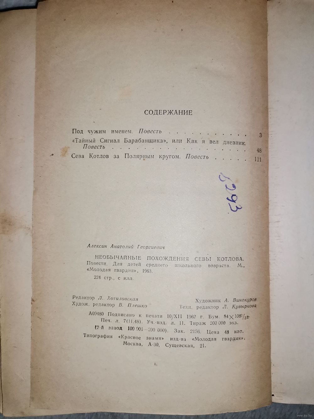 Необычайные похождения Севы Котлова. 1963г. Состояние на фото. Отправка только Европочтой