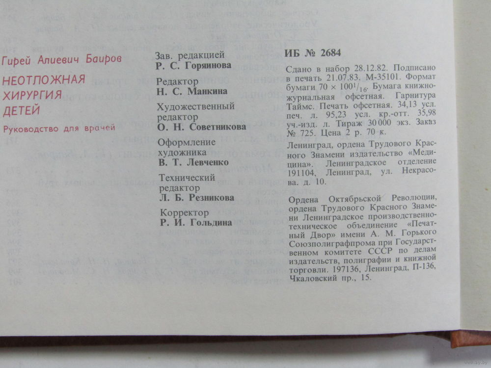 "Неотложная хирургия детей". Книга. Медицина. 1983 г.и.