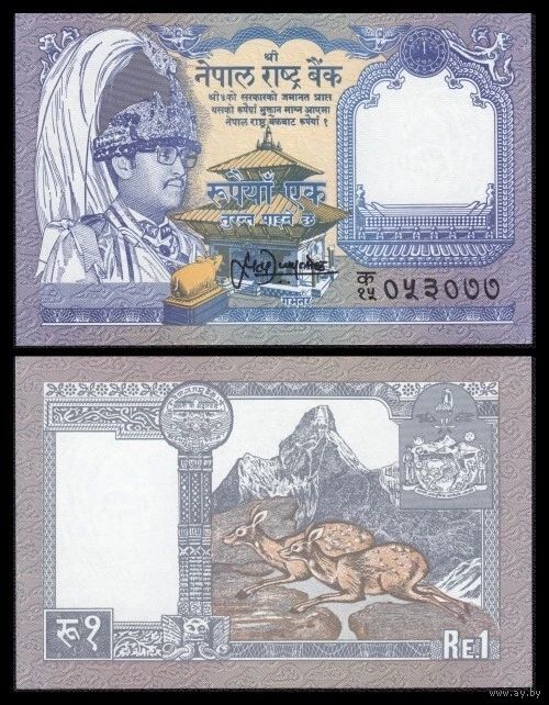 Непал 1 рупия образца 1995-2000 года UNC p37(2)