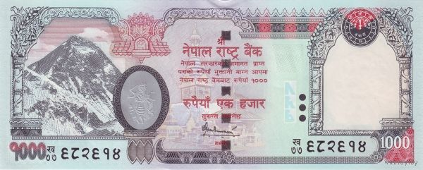Непал 1000 рупий образца 2005-2010 года UNC p68a из первых выпусков