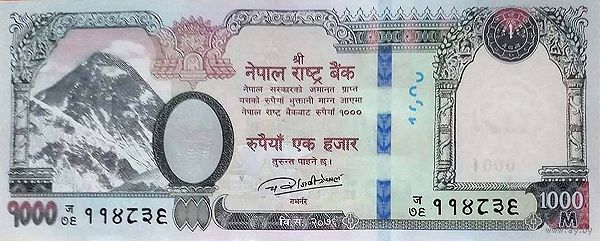 Непал 1000 рупий образца 2019 года UNC pw82