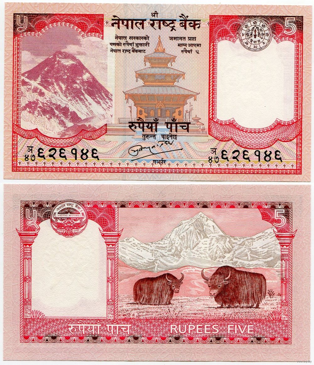 Непал. 5 рупий (образца 2008 года, P60b, подпись 19, UNC)