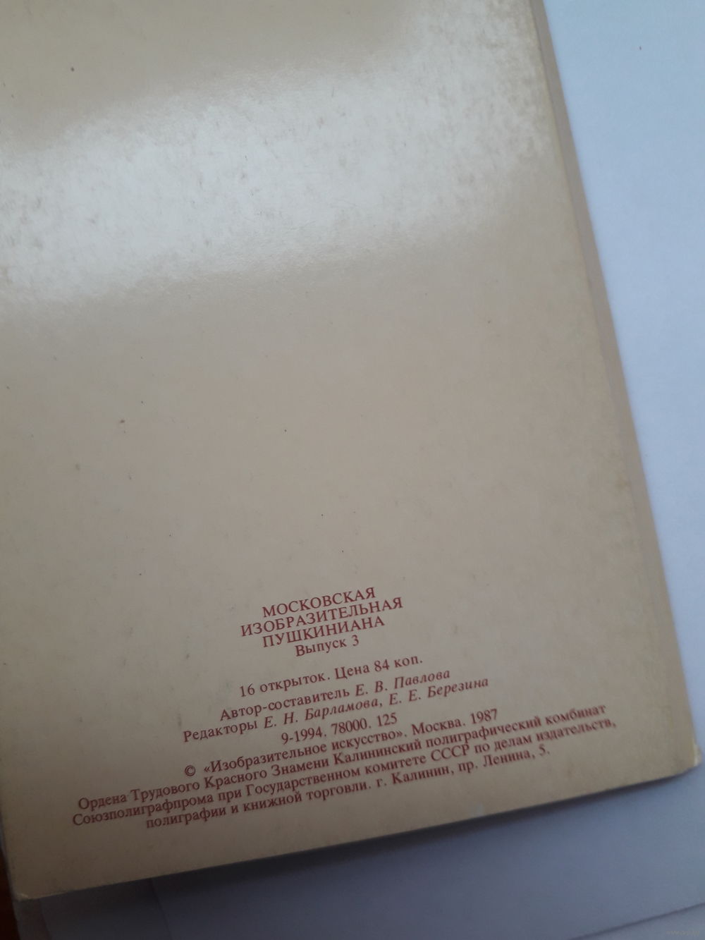 Неполный набор открыток Московская изобразительная Пушкиниана вып 3 (наличие 9 из16)