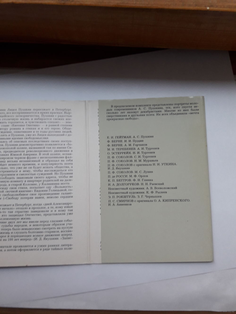 Неполный набор открыток Пушкин и его современники (наличие 8 из 16) вып 2