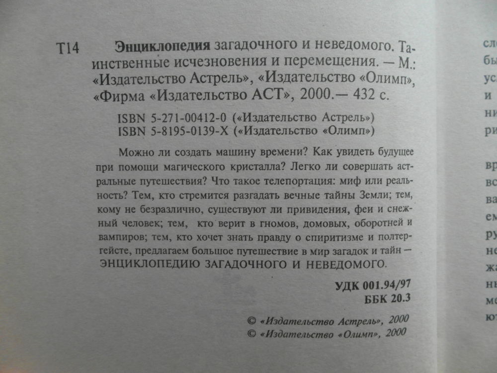 Можно ли создать машину времени? Как увидеть будущее при помощи магического кристалла? Легко ли совершать астральные путешествия? Что такое телепортация: миф или реальность? Тем, кто стремиться разгадать вечные тайны Земли, тем, кому не безразлично, существуют ли привидения, феи и снежный человек, тем, кто верит в гномов, домовых, оборотней и вампиров, тем, кто хочет знать правду о спиритизме и полтергейсте, предлагаем большое путешествие в мир загадок и тайн - Энциклопедию загадочного и неведомого.