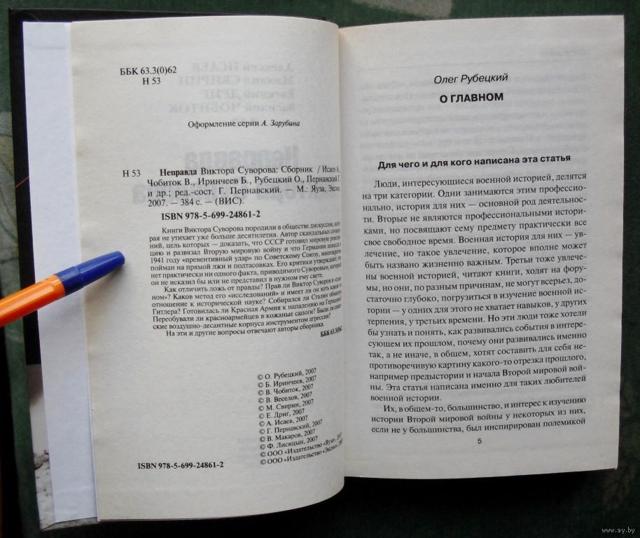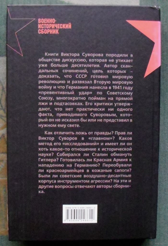 Книги Виктора Суворова породили в обществе дискуссию, которая не утихает уже больше десятилетия. Автор скандальных сочинений, цель которых - доказать, что СССР готовил мировую революцию и развязал Вторую мировую войну и что Германия нанесла в 1941 году "превентивный удар" по Советскому Союзу, многократно пойман на прямой лжи и подтасовках. Его критики утверждают, что нет практически ни одного факта, приводимого Суворовым, который он не исказил бы или не представил в нужном ему свете. Как отличить ложь от правды? Прав ли Виктор Суворов в "главном"? Каков метод его "исследований" и имеет ли он хоть какое-то отношение к исторической науке? Собирался ли Сталин обмануть Гитлера? Готовилась ли Красная Армия к нападению на Германию? Переобували ли красноармейцев в кожаные сапоги? Были ли советские воздушно-десантные корпуса инструментом агрессии? На эти и другие вопросы отвечают авторы сборника.