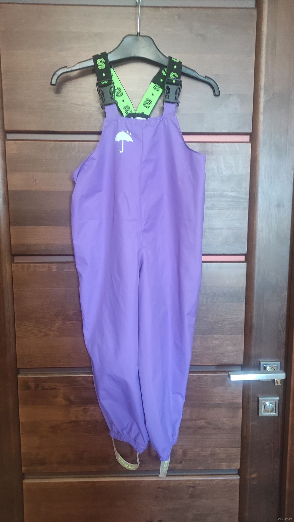 Фото 4-6. Комбинезон непромокаемый на рост 104 см. Цвет сирень], длина без учета шлеек 77 см, шлейки регулируются, ПОгруди до 41 см, шаговый 44 см. Хорошее состояние. Цена 30,00