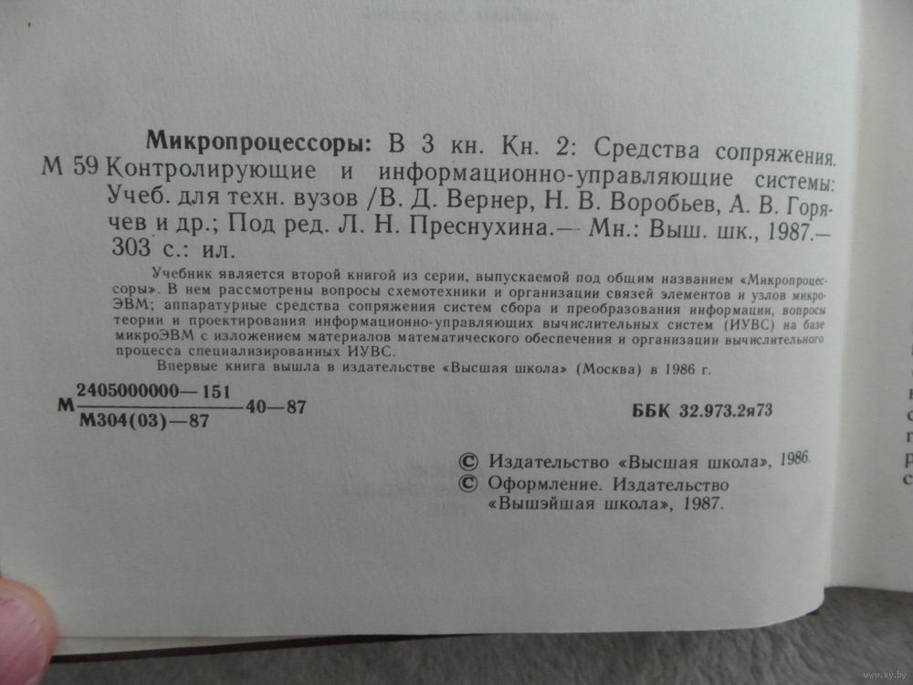 В основу данной книги положен материал учебных пособий «Микропроцессоры», выпущенных издательством «Высшая школа» (Москва) в 1984 г. Первая книга посвящена основам архитектуры микропроцессоров на интегральных схемах с повышенной степенью интеграции элементов, теории проектирования микроЭВМ на основе микропроцессорных комплектов БИС, программированию и организации вычислительных процессов в микроЭВМ: в ней приведены сведения о языках ассемблера, БЭЙСИК, ФОКАЛ, ПЛ/М, ПАСКАЛЬ и др. Во второй книге рассмотрены вопросы схемотехники и организации связей элементов и узлов микроЭВМ: аппаратурные средства сопряжения систем сбора и преобразования информации, вопросы теории и проектирования информационно-управляющих вычислительных систем (ИУВС) на базе микроЭВМ с изложением материалов математического обеспечения и организации вычислительного процесса специализированных ИУВС. В третьей книге определены задачи и проблемы, возникающие при практическом использовании вычислительных систем на базе микропроцессоров: дана методика применения технических средств отладки и диагностирования микропроцессорных устройств: рассмотрены вопросы привития практических навыков в работе с микропроцессорной техникой в рамках лабораторных работ на выпускаемых промышленностью учебных микроЭВМ. Впервые книга вышла в издательстве «Высшая школа» (Москва) в 1986 г.