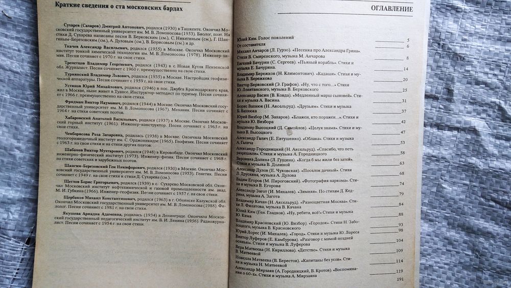 Книга о 33-х московских бардах. Содержит 33 песни с нотами этих авторов. Ч/б портреты. Москва — центр развития жанра современной авторской песни. Здесь жили и работали В.Высоцкий, Ю.Визбор, А.Галич, В.Матвеева, В.Красновский, Л.Семаков, С.Стеркин. Здесь сочиняют свои песни Б.Окуджава, М.Анчаров, Ю.Ким, Н.Матвеева, А.Городницкий и многие другие барды. Книга рассказывает о тридцати трех московских бардах старшего и среднего поколений. Она содержит также тридцать три песни (с нотами) этих авторов и краткие сведения о ста московских бардах всех поколений.
