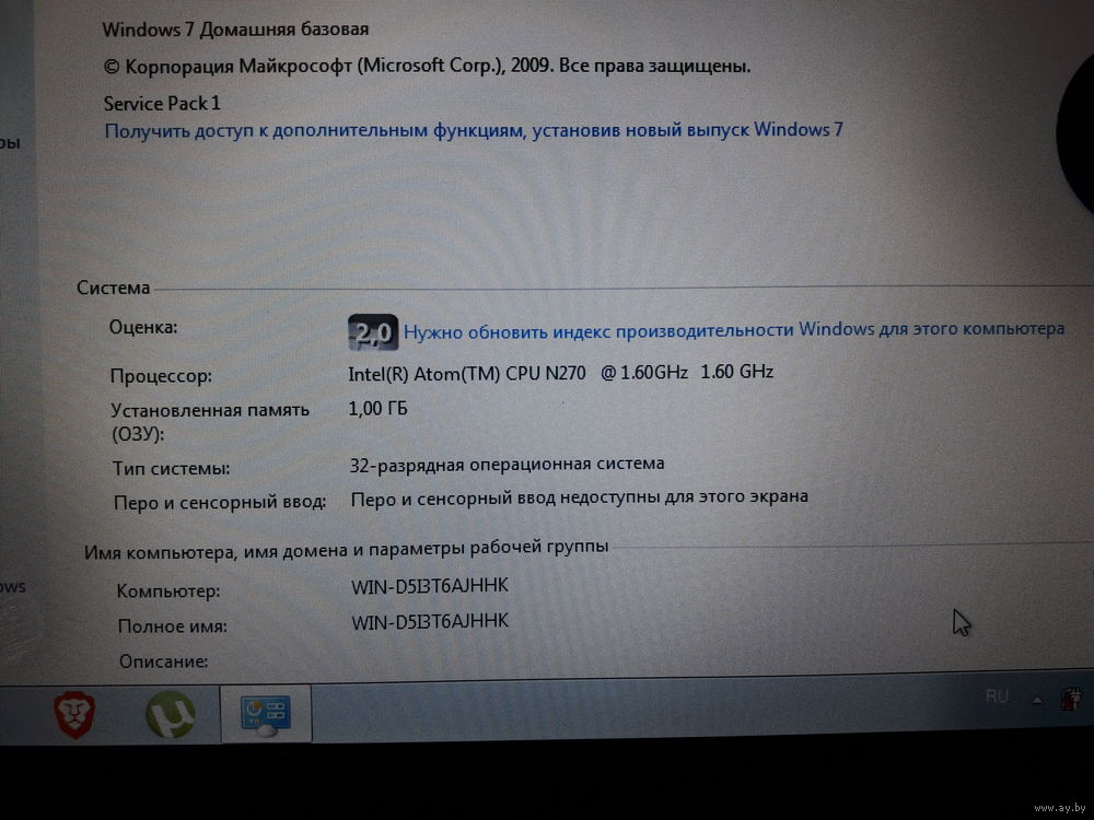 Процессор | Intel Atom 1 ГГц 600 МГц (2-ядерный) |