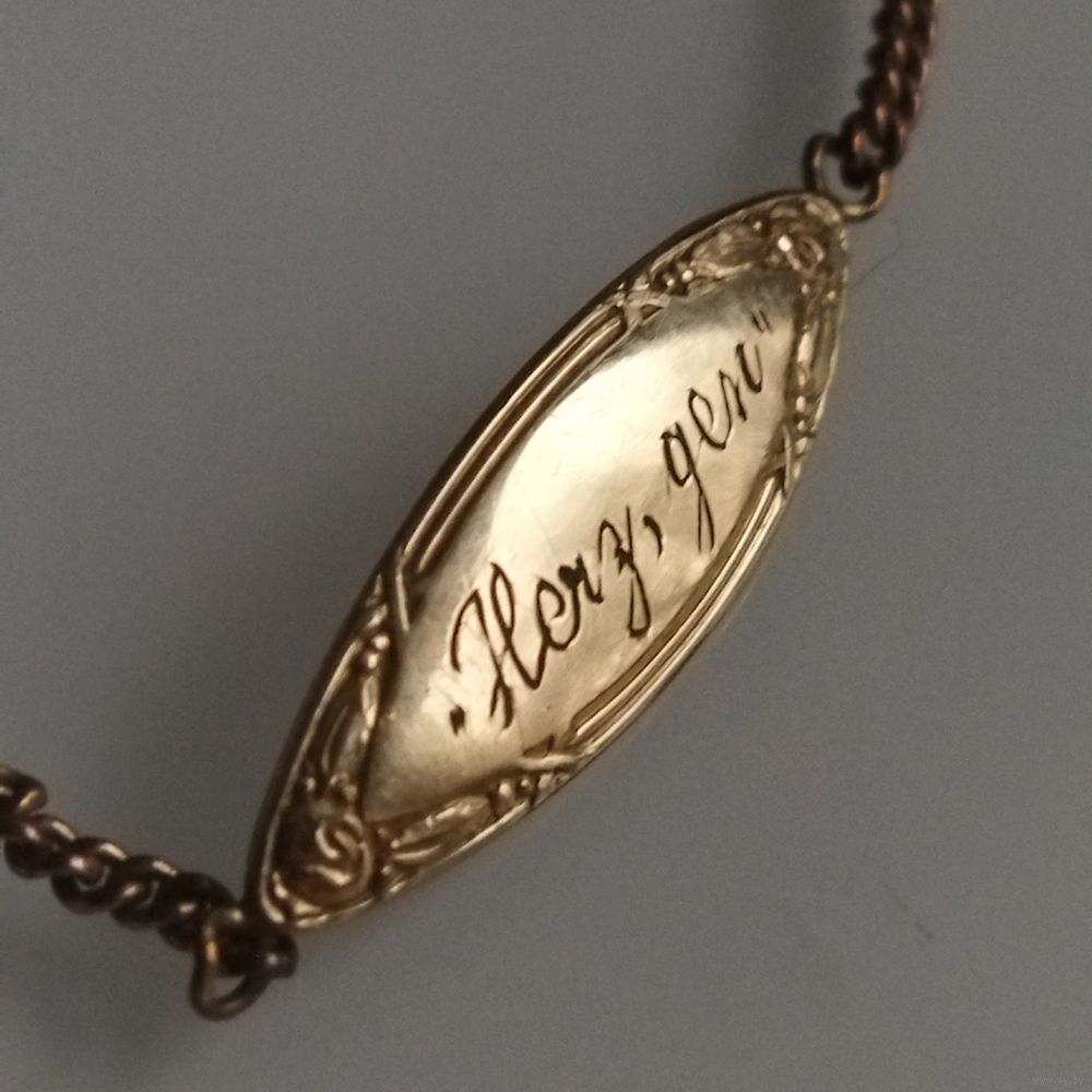 На цепочке вставка именной гравировка. Если это не золото,то высококаратная позолота На первом звене очень мелкие буквы или цифры,но со своим увеличением