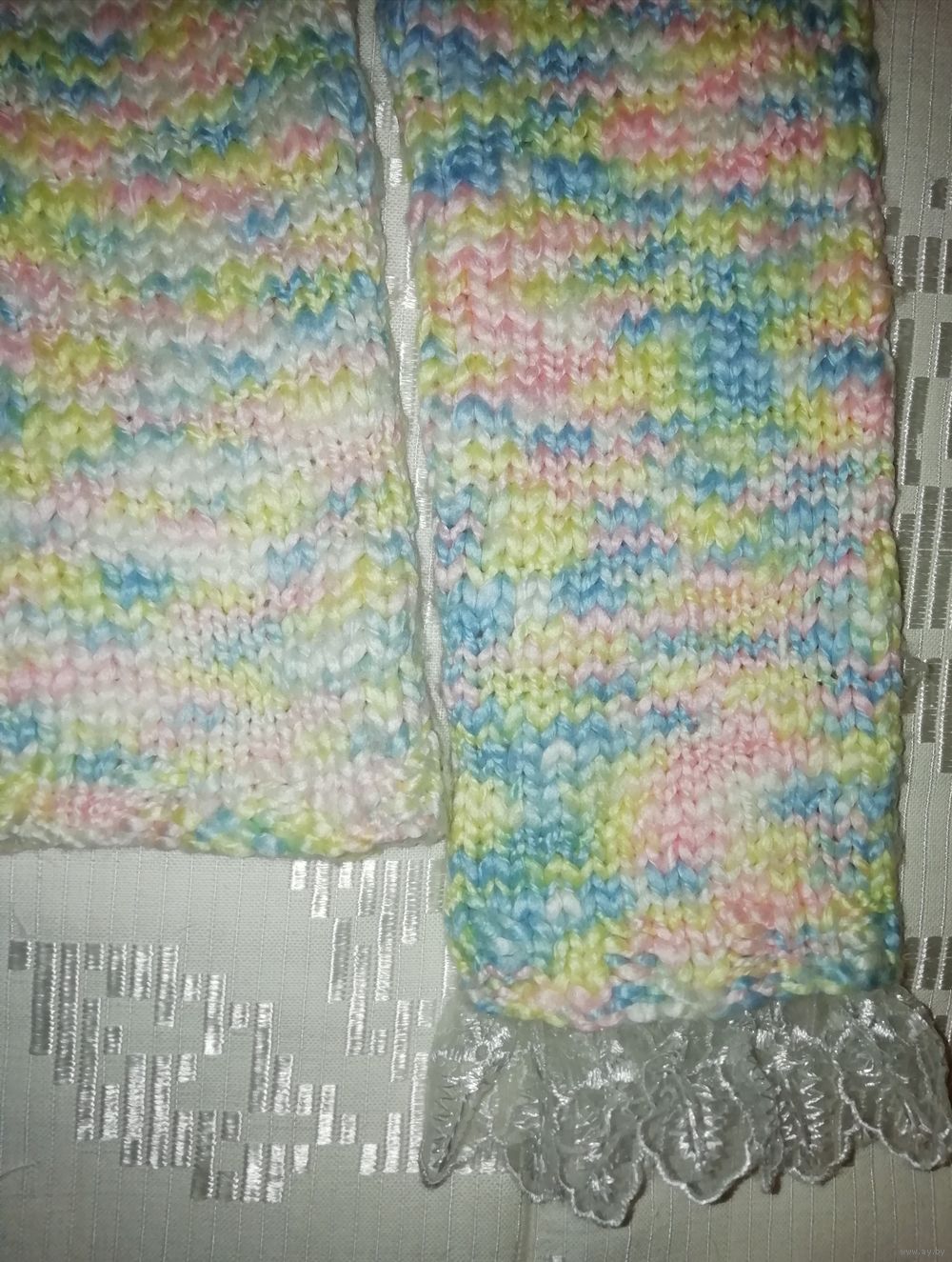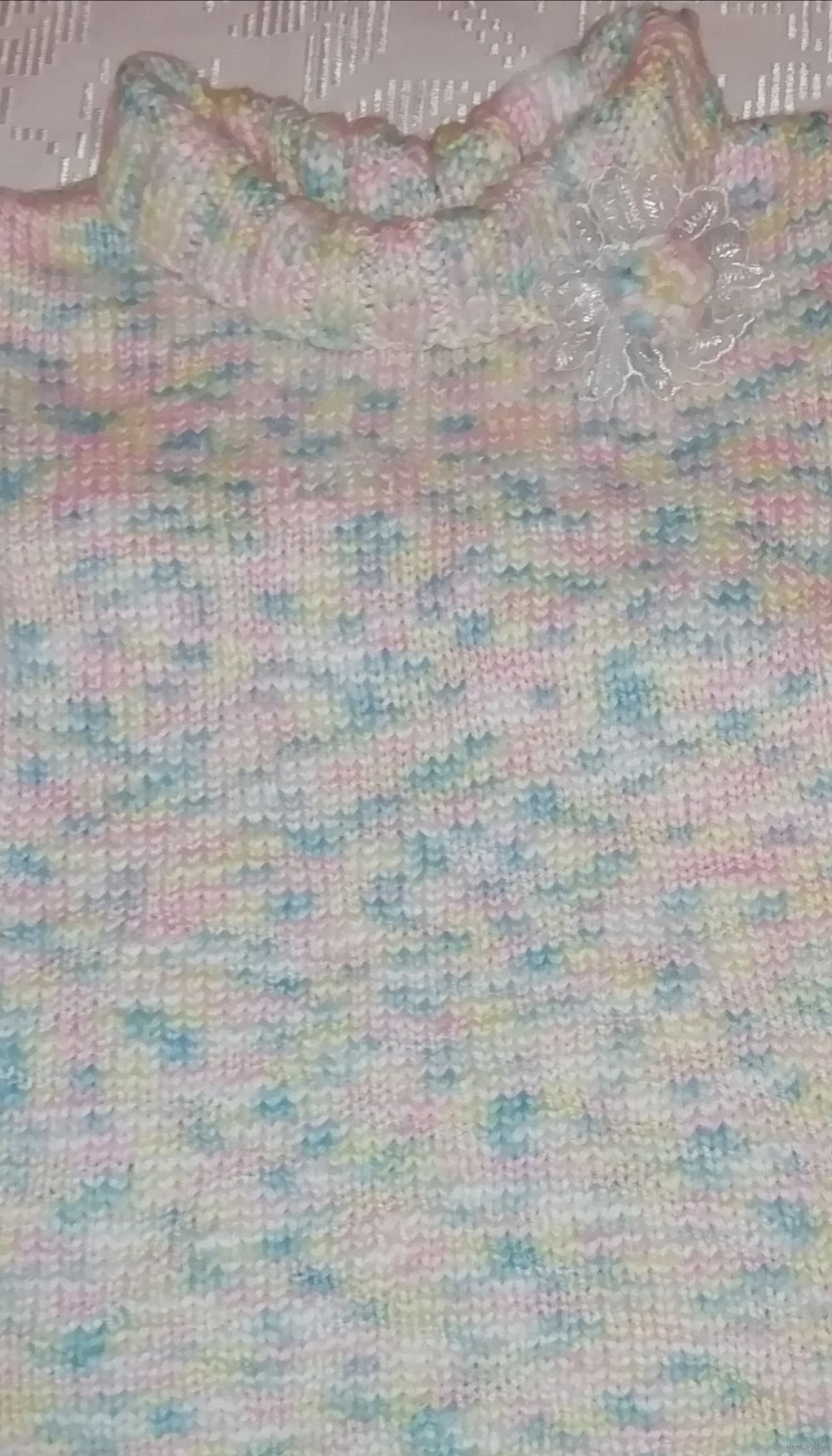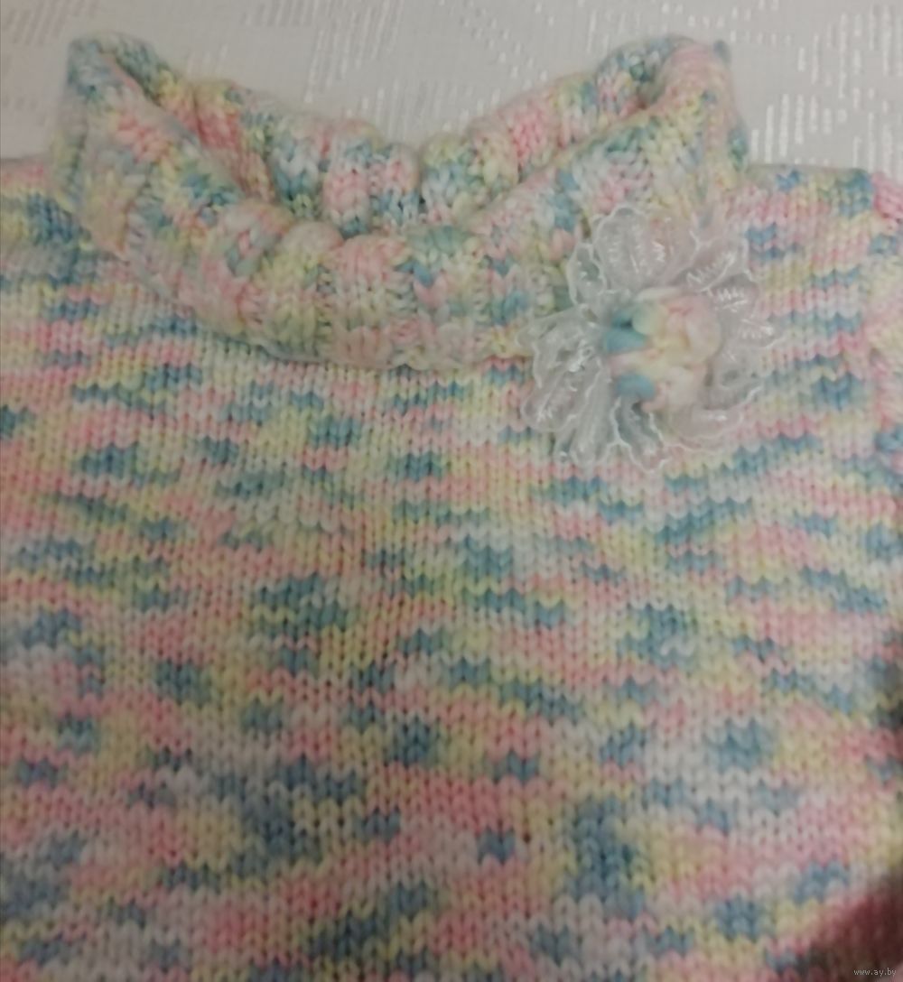 | Свитер ручной вязки, нежной расцветки, теплый, мягкий. Вязка плотная, нить толстая. Размер на наш примерно 44.Состава нити нет, куплены давно,но свитер тёплый, приятныйк телу, не скатывается. | |