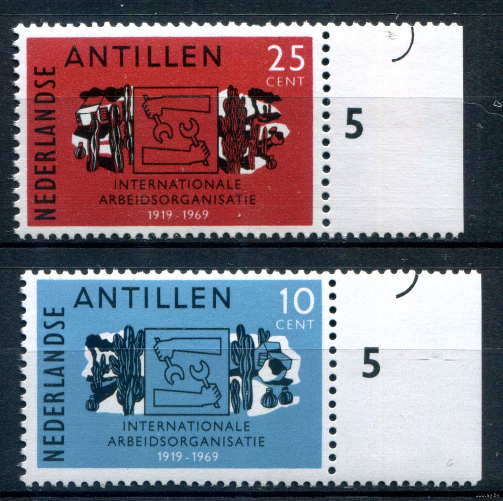 Нидерландские Антильские острова - 1969г. - 50 лет международной рабочей организации - 2 марки - полная серия, MNH [Mi 208-209]. #3-WB-77-A-1