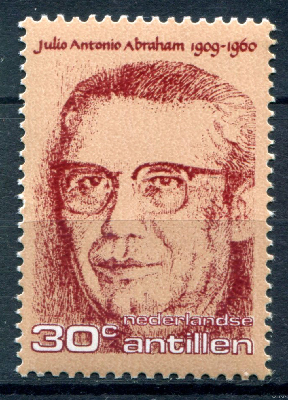 Нидерландские Антильские острова - 1976г. - Хулио Антонио Абрахам, политик - 1 марка - полная серия, MNH с пятнышком на зубчике перфорации [Mi 313]. #3-WB-97-A-1