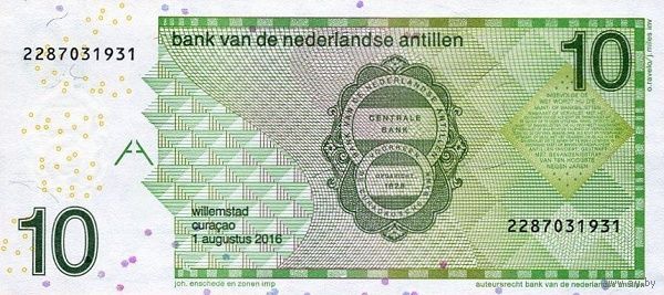 Нидерландские Антилы 10 гульденов образца 2016 года UNC p28h