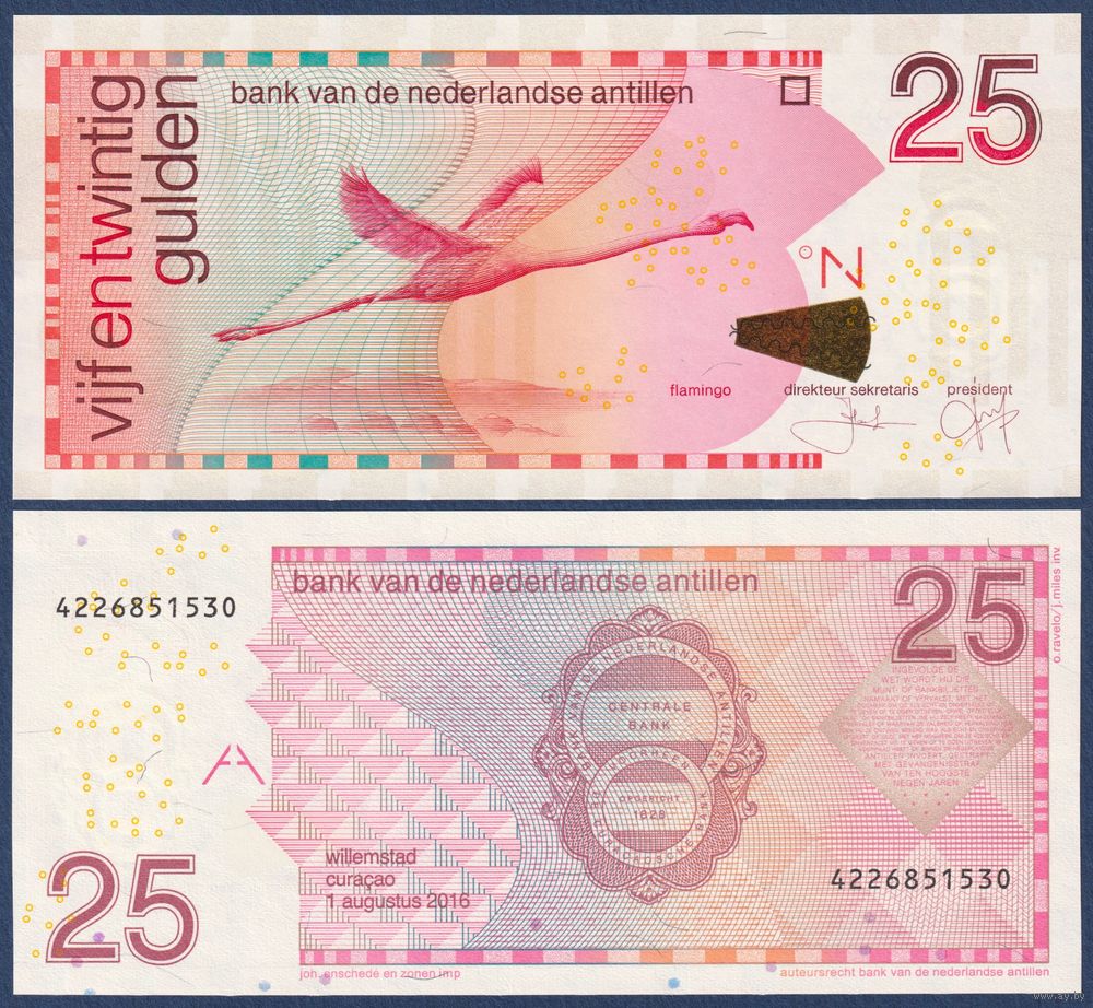 Нидерландские Антилы, 25 гульденов 2016 г, P-29i (фламинго), UNC