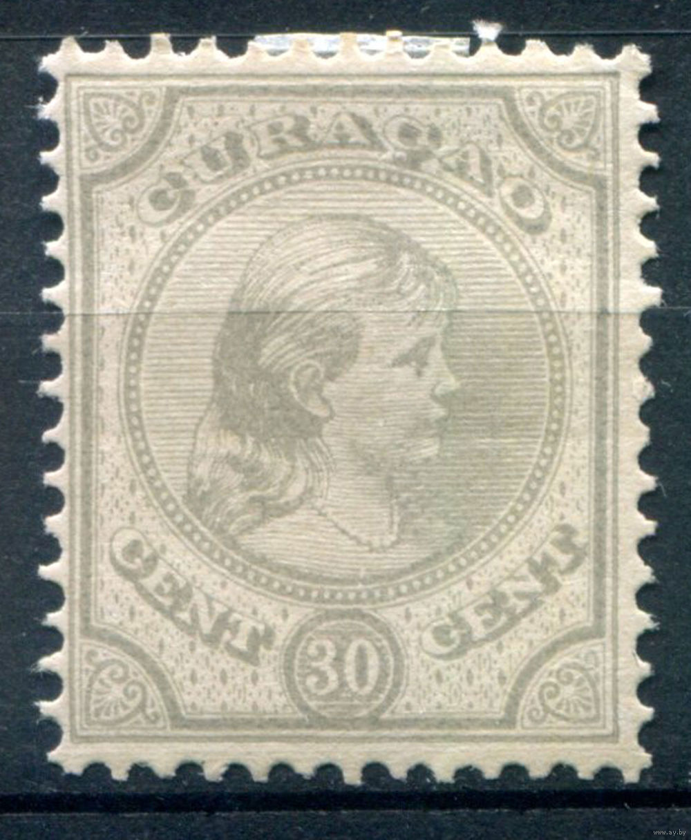 Нидерландские колонии - Кюрасао - 1892/96г. - королева Вильгельмина, 30 с - 1 марка - MH, есть пузырьки на клее [Mi 29]. #3-WB-89-A-1