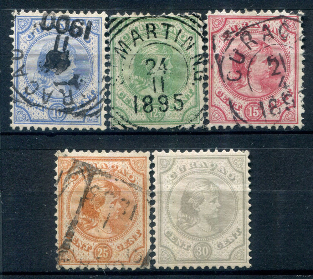 Нидерландские колонии - Кюрасао - 1892/96г. - королева Вильгельмина - 5 марок - полная серия, гашёные, MH [Mi 25-29]. #3-WB-77-A-1