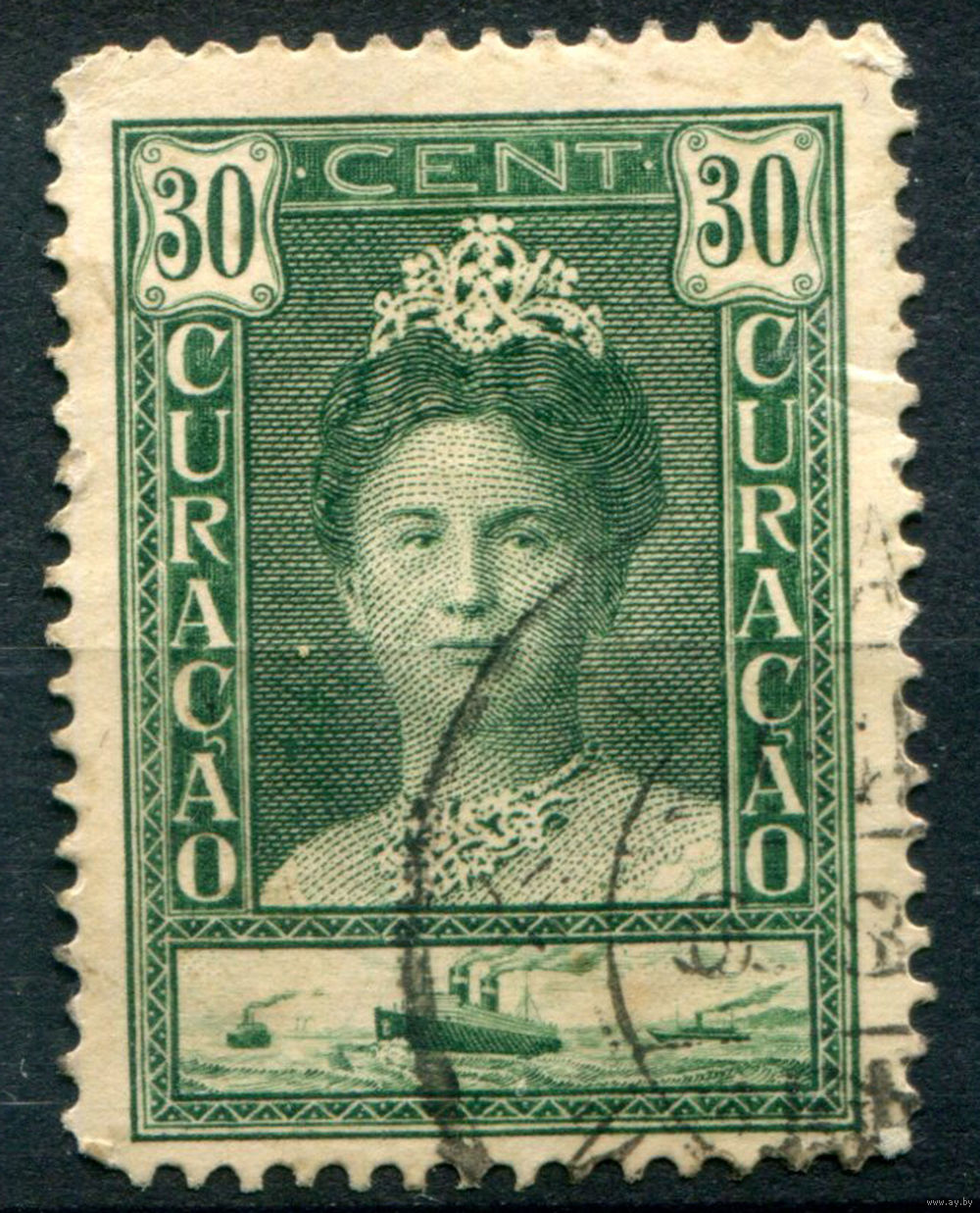 Нидерландские колонии - Кюрасао - 1928/30г. - 30 лет правления королевы Вильгельмины, 30 с - 1 марка - гашёная [Mi 102]. #3-WB-85-A-1
