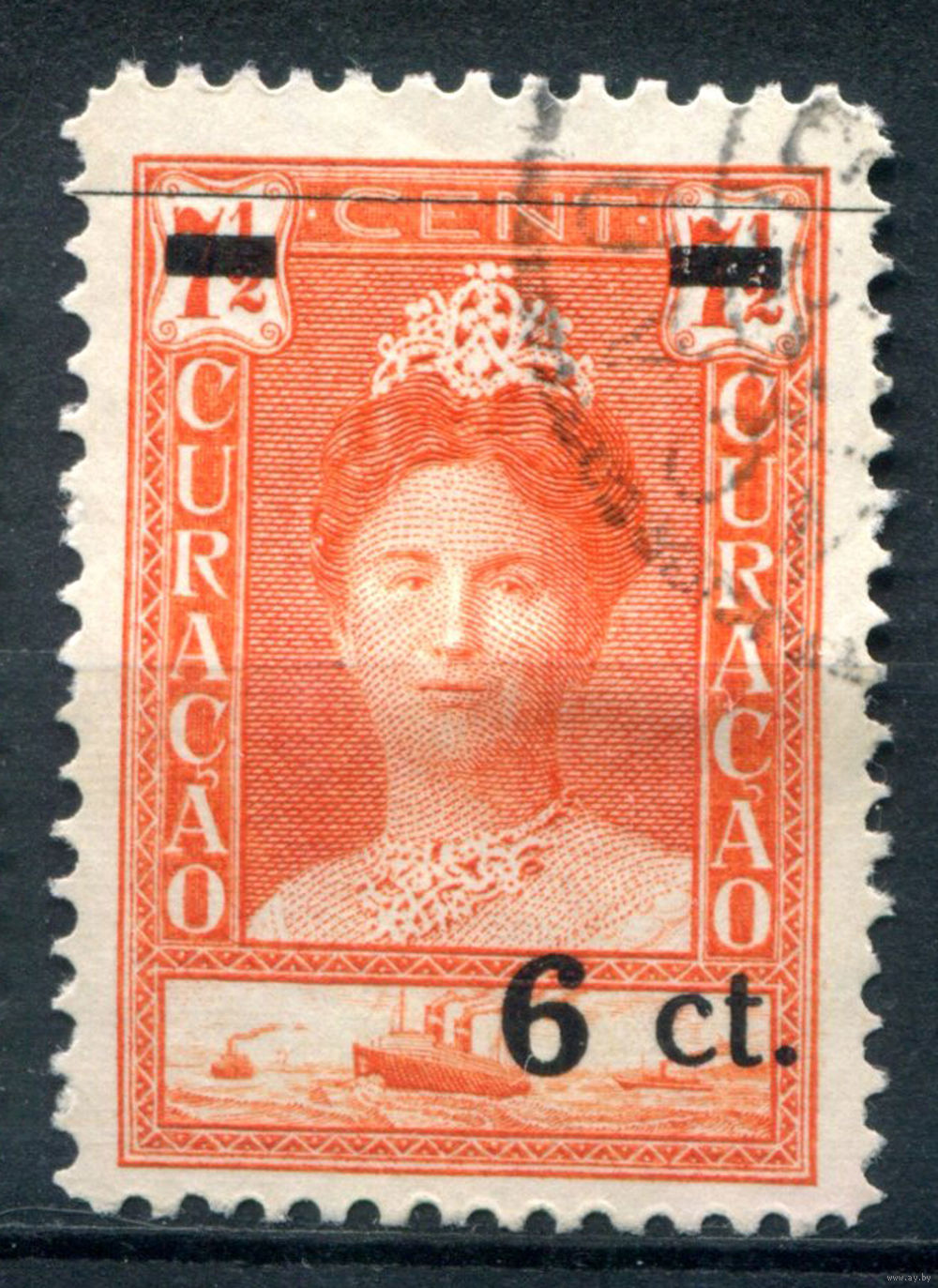 ![Нидерландские колонии - Кюрасао - 1929г. - 30 лет правления королевы Вильгельмины, надпечатка 6 с - 1 марка - полная серия, гашёная [Mi 107]. #3-WB-93-A-1](https://s1-lot.aystatic.by/550x510/491/77/5040/5040077491_0.jpg)