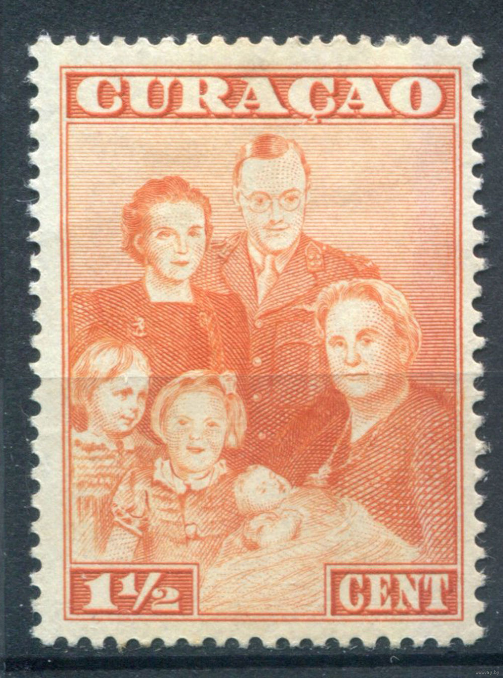 Нидерландские колонии - Кюрасао - 1943г. - королевская семья, 1 1/2 с - 1 марка - MH [Mi 204]. #3-WB-81-A-1
